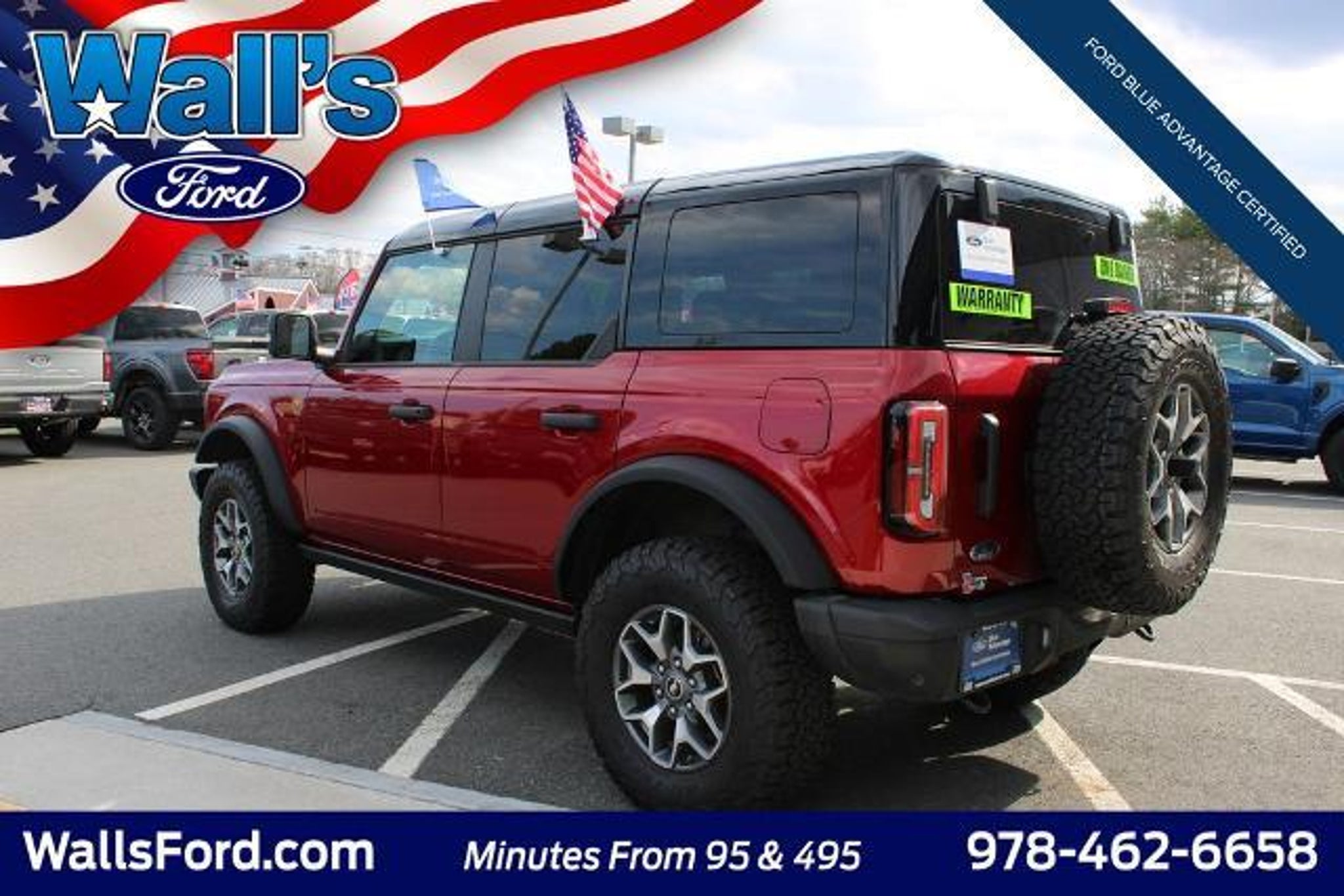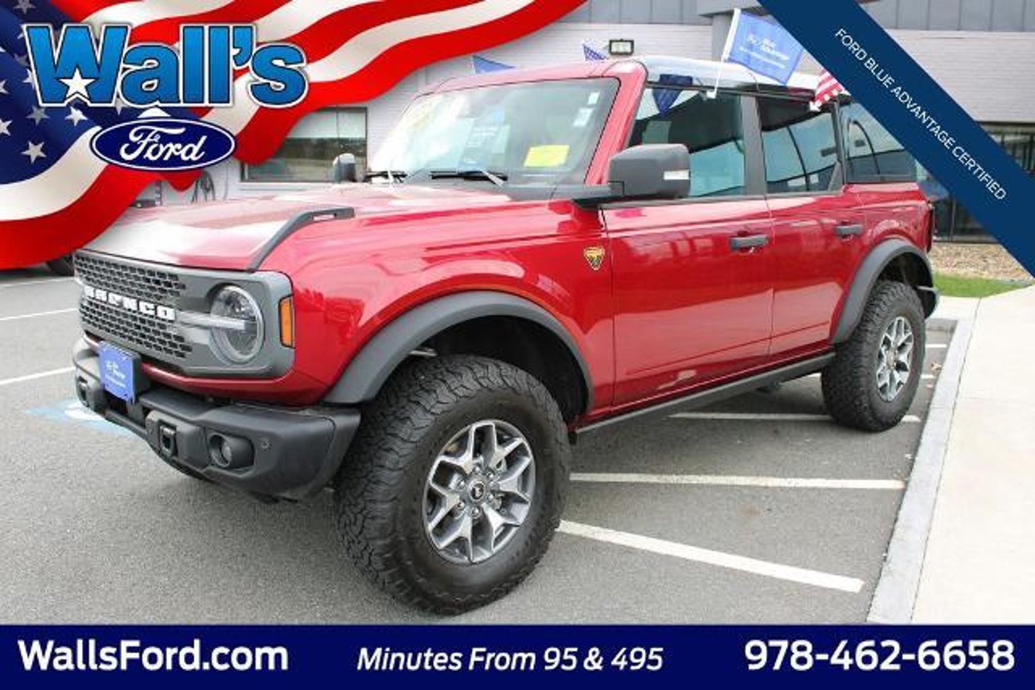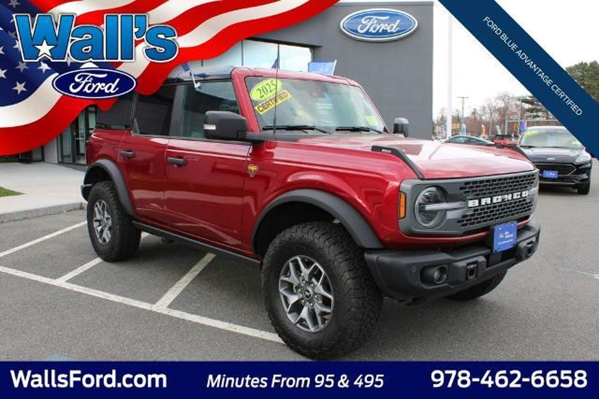 Details > 2025 Ford Bronco 4X4 Badlands 4DR SUV For Sale in Salisbury, MA Private Party Sellers Click here to place your ad now! You auta tell them you saw the ad in AutaBuy when you call or email. 1/35 2/35 3/35 4/35 5/35 6/35 7/35 8/35 9/35 10/35 11/35 12/35 13/35 14/35 15/35 16/35 17/35 18/35 19/35 20/35 21/35 22/35 23/35 24/35 25/35 26/35 27/35 28/35 29/35 30/35 31/35 32/35 33/35 34/35 35/35 View 35 Photos View All Add to My Garage Parked in Your Garage! Wall's Ford Inc Contact Seller: I would like to: Make Offer Check Availability Ask A Question Request More Photos Check Financing Options Send a copy of this message to me Add this listing to my garage Send to Mobile Mileage 21,493 Exterior Color Ruby Red Metallic Tinted Clearcoat Interior Color Black Onyx Doors 4 Engine 2.7L V6 Transmission 10 Speed Auto Stock # P4124 VIN 1FMEE9BP2SLA41703 Estimated Monthly Payment $924 mo Apply Now J.J. Best Banc & Co. 2025 Ford Bronco 4X4 Badlands 4DR SUV Description: Visit us at www.wallsford.COM · Mileage: 21,493 · Color: Ruby Red Metallic Tinted Clearcoat Price: $53,084. Mileage 21,493 Exterior Color Ruby Red Metallic Tinted Clearcoat Interior Color Black Onyx Doors 4 Engine 2.7L V6 Transmission 10 Speed Auto Stock # P4124 VIN 1FMEE9BP2SLA41703 Estimated Monthly Payment $924 mo Apply Now J.J. Best Banc & Co. Add to My Garage Parked in Your Garage! Message Seller Wall's Ford Inc Contact Seller: I would like to: Make Offer Check Availability Ask A Question Request More Photos Check Financing Options Send a copy of this message to me Add this listing to my garage Offered for sale by Wall's Ford Inc SALISBURY, MA Price: $53,084. Offered for sale by Wall's Ford Inc SALISBURY, MA [entire inventory] Ask Auta Intelligence The first collector-car AI built directly into a classic car marketplace What trim levels were available for this model? What kind of mileage do these get? What transmission options did these offer? What colors did these come in? What factory options were available on this model? How many passengers can this seat comfortably? How far is this from me? Where is this located? What safety features does this model offer? Tell me more about this model Can you show me more suvs for a similar price? When was this model first introduced? How many Broncos were produced in Red? What engine options did these come with? What does this VIN number tell me? How easy are parts to find for this model? How many of these were produced? Do you have a similar car to sell? List It Now! Questions about this car? Ask Auta Intelligence for production numbers, available options, etc. · Subscribe to AutaBuy! · Send a Gift Subscription Notice to a Friend