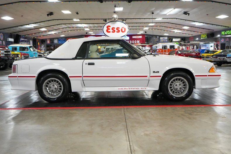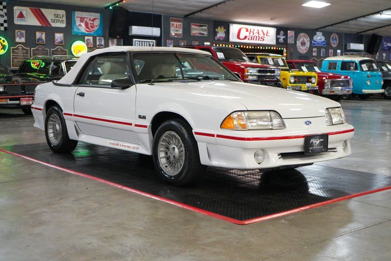 This 1987 Ford Mustang GT Convertible is a clean, well-preserved Fox-body powered by the legendary 5.0L Small Block Ford V8 paired with an AOD automatic transmission and a Ford 8.8 POSI rear end. Showing just 78K original miles and backed by a Clean CarFax, it offers classic 1980s Mustang performance and style. Equipped with electronic fuel injection, air conditioning, power steering, and power brakes, it delivers smooth and reliable driving. The white leather interior pairs perfectly with the white exterior and white convertible top. Riding on OEM aluminum wheels with Uniroyal tires, this Mustang GT captures the iconic Fox-body era. THIS VEHICLE QUALIFIES FOR FREE SHIPPING AND A WARRANTY!!