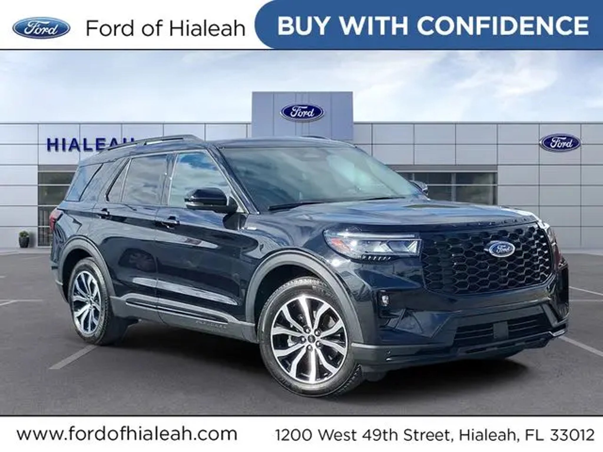 Priced below KBB Fair Purchase Price! Leather, Rear Backup Camera, Bluetooth, Carfax Certified, MANAGER'S SPECIAL!, 1 Owner!, GPS / Navigation, MUST SEE!, WON'T LAST!, NONSmoker, Towing Package, 3rd Row Seat/ 7 or 8 Seat Option, All books & keys (when applicable), Apple Carplay, All Routine Maintenance Up to Date!, Extended Warranty Available!, Remainder of Factory Warranty Included!, Service Records Available, Multifunction Steering Wheel, Blind Spot Monitoring, Lane Keeping Assist, Keyless Go / Push Button Start, Technology Package. 2025 Ford Explorer ST-Line Black Metallic 2.3L EcoBoost I-4 RWD 20/29 City/Highway MPG ** Let Ford of Hialeah be your #1 choice for your next Pre-owned vehicle. At Ford of Hialeah we take pride in everything we do and strive to not only to be the best Florida dealership but to be the best in the nation. CARFAX-Certified, Trades welcomed, Financing Available. All Pre-owned vehicles are offered with 162-point inspection, and CARFAX vehicle report. Before you sell your trade let one of our Sales consultants offer you the most for your car without the hassle. And whether you are looking for a Lincoln, Honda, Mercedes-Benz, Toyota, Ford, Hyundai, Lexus or BMW, we will have what you want and if we don't, we will find it for you. Call us today! Call or see dealer for details. Valid only to internet customers who provide printed offer. Not valid in conjunction with any other offer. Price is subject to change without notice.**