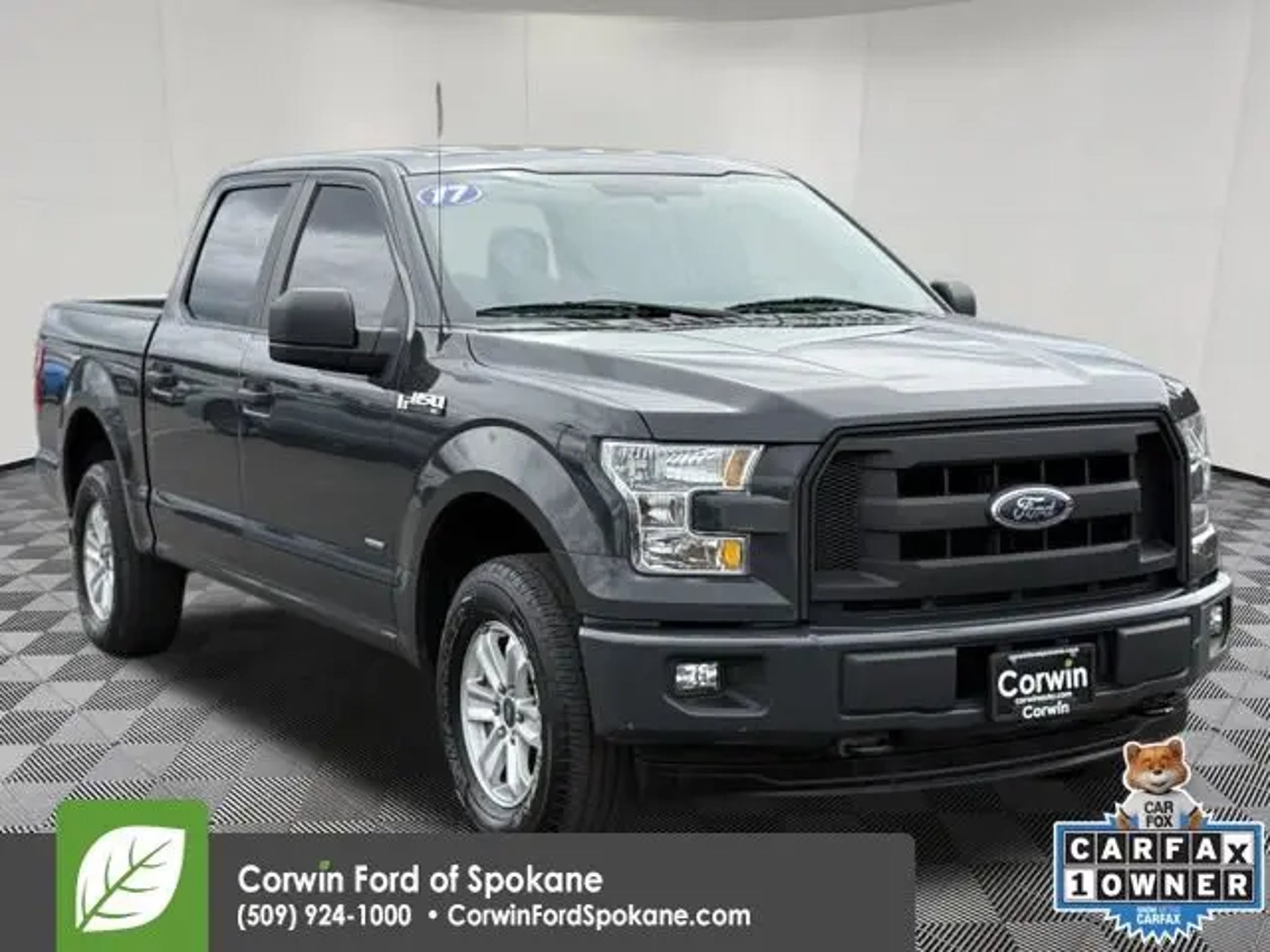 Experience the Capability and Versatility of the 2017 Ford F-150 XL This 2017 Ford F-150 XL is a rugged and reliable workhorse that's ready to take on any task you throw its way. With its powerful 2.7L V6 EcoBoost engine, 4-wheel drive, and impressive towing capacity, this truck is built to handle the demands of your active lifestyle. - 1 Owner, Local Trade!! - Equipped with the XL Sport Appearance Package, featuring body-color front and rear bumpers, fog lamps, and 17-inch silver painted aluminum wheels for a bold, stylish look. - Includes the SYNC 3 infotainment system with enhanced voice recognition, 911 Assist, and a 4.2-inch LCD display for seamless connectivity on the go. - Offers the convenience of illuminated entry, power windows, power locks, and a power tailgate lock. - Boasts a spacious cabin with a 40/20/40 split front seat and a rear bench that can accommodate your passengers and cargo with ease. This F-150 XL is the perfect blend of capability, technology, and comfort. Whether you're hauling heavy loads, towing a trailer, or simply commuting in style, this truck is up for the task. Experience the power and versatility of the 2017 Ford F-150 XL for yourself. Visit us today at Corwin Ford Spokane and let us show you why this truck is the perfect fit for your needs. See us today at Corwin Ford Spokane. Family owned for over 100 years! Excellent selection of New and Used vehicles, Financing options. Serving Spokane, Pasco, Kennewick, Richland, Walla Walla, Hermiston, Umatilla, Yakima, Sunnyside, Grandview, Dayton, Prescott, Denton County, Franklin County, Yakima County, Spokane County, Adams County, Grant County, and the Greater Columbia Basin. *All Prices plus applicable sales tax, license, and a negotiable documentary service fee up to $200 may be added to sales price or capitalized cost of the vehicle. One vehicle unless otherwise noted and subject to prior sale without notice. While supplies last. EPA mileage estimates are for newly manufactured vehicles only. Your actual mileage will vary depending on how you drive and maintain your vehicle.