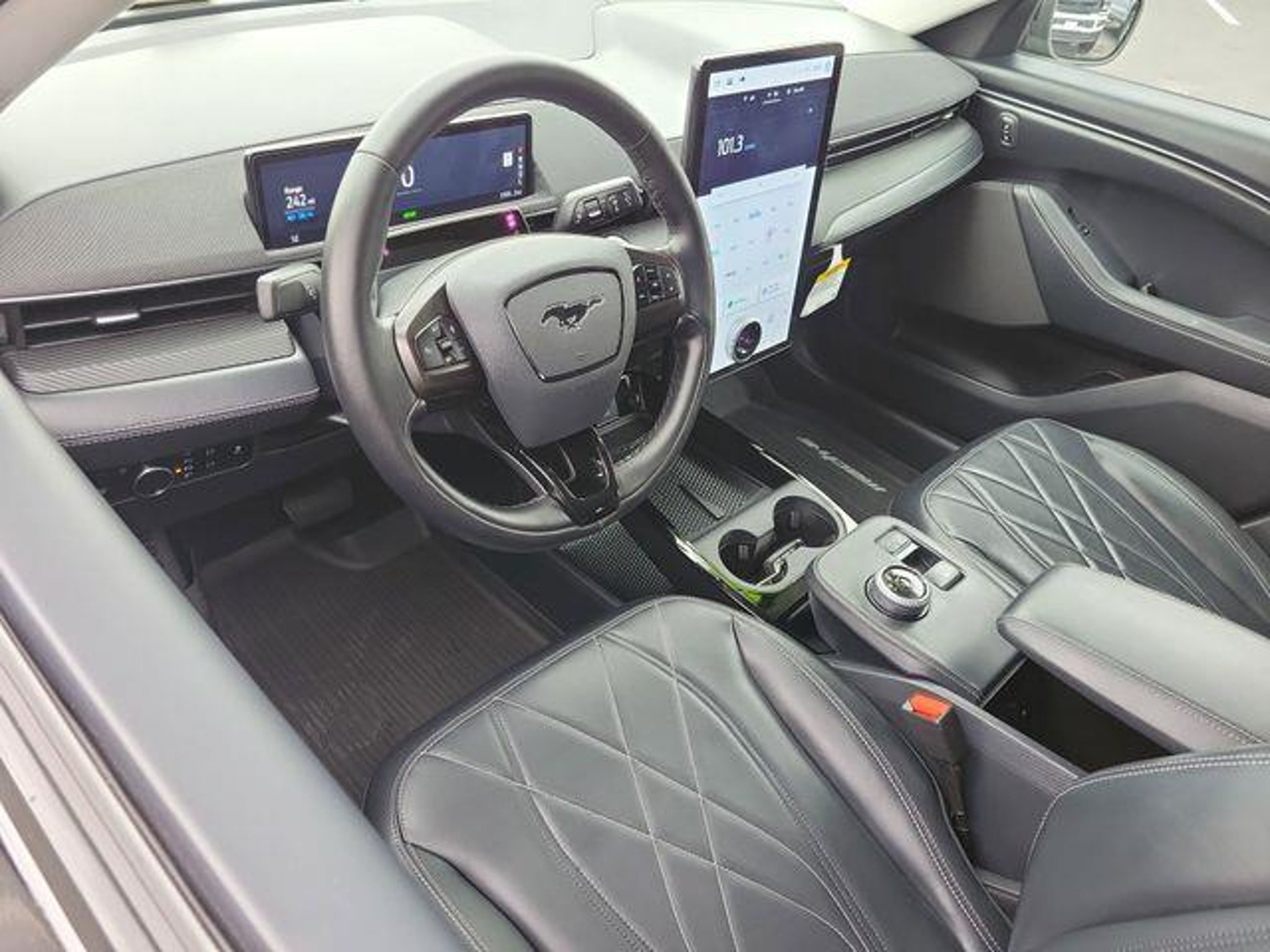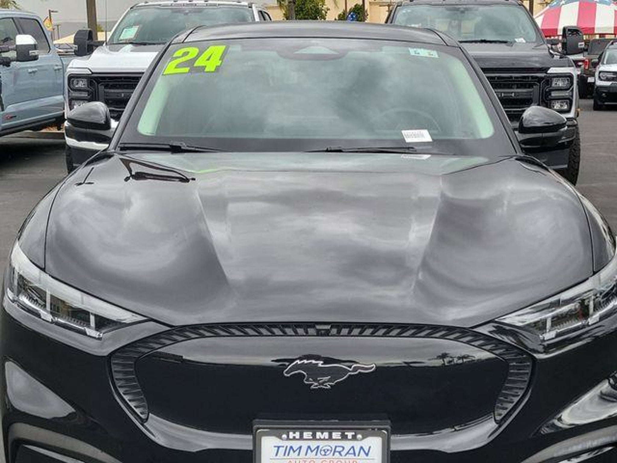 CARFAX One-Owner. Clean CARFAX. Comfort Package Lite (Heated Front Row Seats, Heated Steering Wheel, and Memory Driver's Seat & Sideview Mirrors), Equipment Group 100A, Interior Protection Package (Pre-Installed) (1st & 2nd Row Floor Liners w/o Carpet Mats, Cargo Area Cover, and Cargo Floor Liner), 4-Wheel Disc Brakes, 6 Speakers, ABS brakes, ActiveX Bucket Seats, Air Conditioning, Alloy wheels, AM/FM radio: SiriusXM with 360L, AM/FM Stereo, Apple CarPlay/Android Auto, Auto High-beam Headlights, Auto-dimming Rear-View mirror, Automatic temperature control, Axle Ratio: 9.791, BlueCruise Equipped (3-Year Plan), Brake assist, Bumpers: body-color, Compass, Delay-off headlights, Driver door bin, Driver vanity mirror, Dual front impact airbags, Dual front side impact airbags, Electronic Stability Control, Emergency communication system: 911 Assist, Exterior Parking Camera Rear, Four wheel independent suspension, Front anti-roll bar, Front Bucket Seats, Front Center Armrest, Front dual zone A/C, Front License Plate Bracket, Front reading lights, Fully automatic headlights, Garage door transmitter, Heated door mirrors, Illuminated entry, Knee airbag, Low tire pressure warning, Mobile Power Cord (120V/240V), Navigation system: Connected Navigation, Occupant sensing airbag, Outside temperature display, Overhead airbag, Overhead console, Panic alarm, Passenger door bin, Passenger vanity mirror, Power door mirrors, Power driver seat, Power steering, Power windows, Radio data system, Rain sensing wipers, Rear anti-roll bar, Rear seat center armrest, Rear side impact airbag, Rear window defroster, Rear window wiper, Remote keyless entry, Security system, SiriusXM Radio w/360L, Speed control, Speed-sensing steering, Speed-Sensitive Wipers, Split folding rear seat, Spoiler, Steering wheel mounted audio controls, SYNC 4A w/Enhanced Voice Recognition, Telescoping steering wheel, Tilt steering wheel, Traction control, Trip computer, Turn signal indicator mirrors, Variably intermittent wipers, Wheels: 19 Hi-Gloss Black Painted, and Wheels: 19 Machined-Face Aluminum. Shadow Black 2024 Ford Mustang Mach-E Select AWD Single-Speed Automatic Electric Motor Recent Arrival! 103/94 City/Highway MPG Welcome to Tim Moran Ford! Located in Hemet, CA, Tim Moran Ford is proud to be one of the premier dealerships in the area. From the moment you walk into our showroom, you'll know our commitment to Customer Service is second to none. We strive to make your experience with Tim Moran Ford a good one ? for the life of your vehicle. Whet