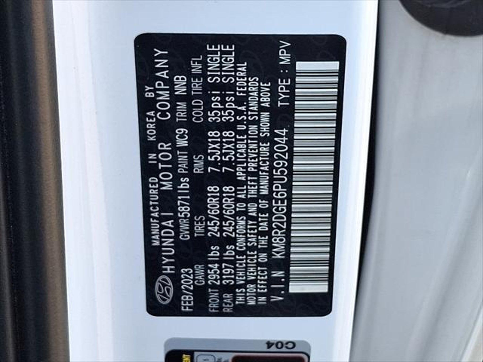 VIN KM8R2DGE6PU592044