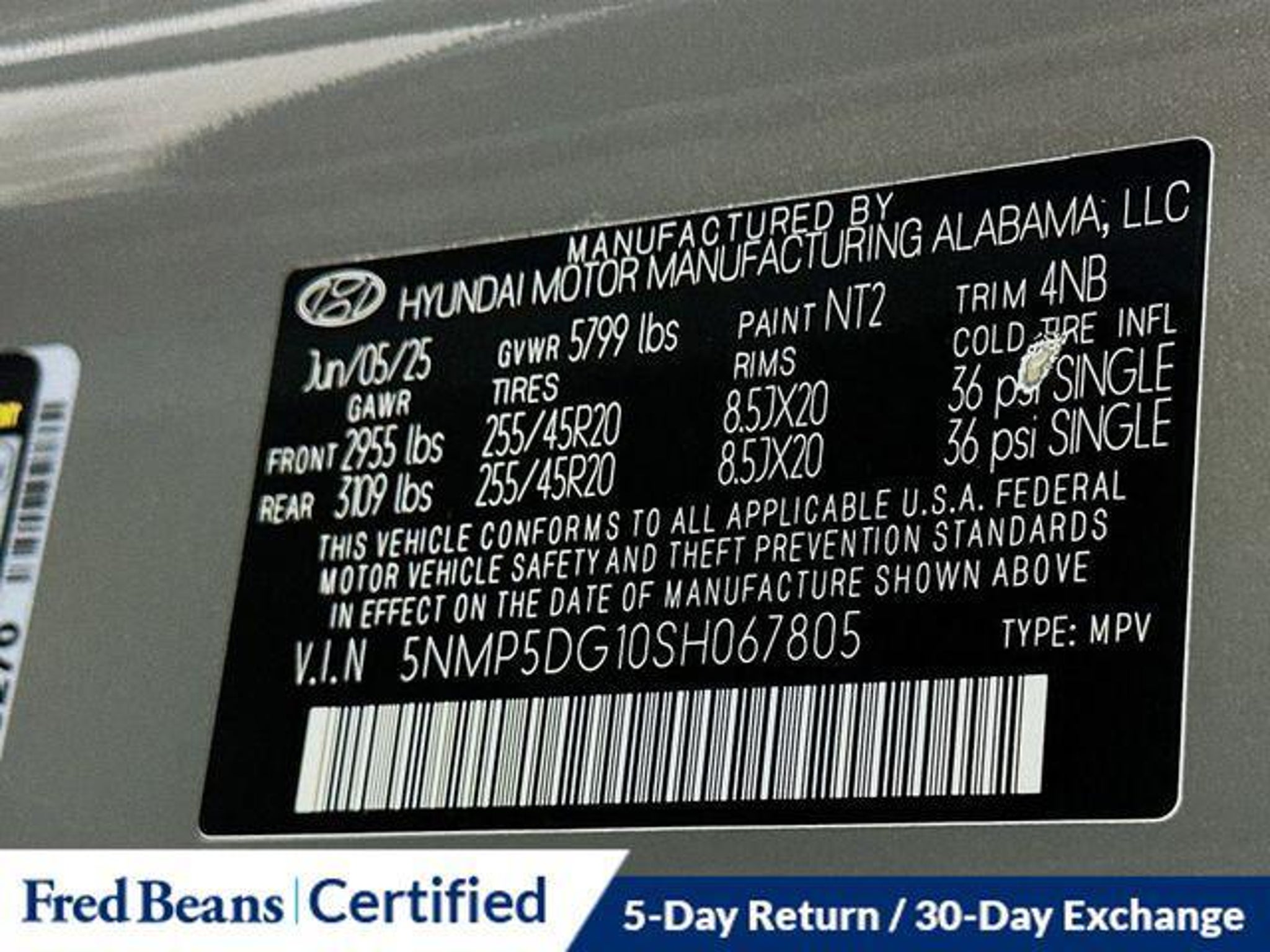 Discover the perfect blend of style, technology, and efficiency in the 2025 Hyundai Santa Fe Hybrid Calligraphy. This exceptional SUV is a true standout, combining exceptional performance, advanced features, and uncompromising quality. With its sleek exterior design and premium Nappa leather interior, the Santa Fe Hybrid Calligraphy exudes an undeniable sense of luxury. Boasting a striking Gray exterior and a host of carefully curated custom features, this vehicle is sure to turn heads wherever you go. - 5 Day Return / 30 Day Exchange - Auto Rewards Program - Factory Certified Vehicle - Great Service History - Local Trade - Carpeted Floor Mats - Cargo Tray - First Aid Kit - Tow Hitch - Radio: AM/FM/HD Bose Premium Audio System - Front dual zone A/C - Heads-Up Display - Memory seat - Power driver seat - Remote keyless entry - Steering wheel mounted audio controls - Power Liftgate - Auto High-beam Headlights - Fully automatic headlights - Heated door mirrors - Power door mirrors - Turn signal indicator mirrors - Apple CarPlay & Android Auto - Auto-dimming Rear-View mirror - Heated steering wheel - Illuminated entry - Leather steering wheel - Navigation System - Exterior Parking Camera Rear - Heated & Ventilated Front Bucket Seats - Heated rear seats - Power passenger seat - Premium Nappa Leather Seat Trim - Power moonroof - Wheels: 20 x 8.5J Unique Dark Finish Alloy - Rain sensing wipers Hyundai Certified Used Vehicles come with a comprehensive package of benefits, including: - 173 Point Inspection - Roadside Assistance - Warranty Deductible: $50 - Vehicle History - Limited Warranty: 60 Month/60,000 Mile (whichever comes first) from original in-service date - Powertrain Limited Warranty: 120 Month/100,000 Mile (whichever comes first) from original in-service date - Includes 10-year/Unlimited Mileage Roadside Assistance with Rental Car and Trip Interruption Reimbursement; Please See Dealers for Specific Vehicle Eligibility Requirements. - 10-Year/100,000 Mile Hybrid/EV Battery Warranty. - 3-Months SiriusXM Trial Subscription. - Complimentary 1 Year (Connected Care & Remote Pkgs). With its exceptional fuel efficiency, delivering an impressive 35 MPG in the city and 34 MPG on the highway, the Santa Fe Hybrid Calligraphy is the perfect choice for those seeking a balance of power, comfort, and eco-friendliness. Equipped with a robust I4 engine and AWD, this SUV offers the perfect blend of performance and capability to handle any road conditions with ease. Discover the exceptional value and unparalleled features of the 2025 Hyundai Santa Fe Hybrid Calligraphy. Schedule a test drive today and experience the ultimate in luxury, technology, and efficiency.