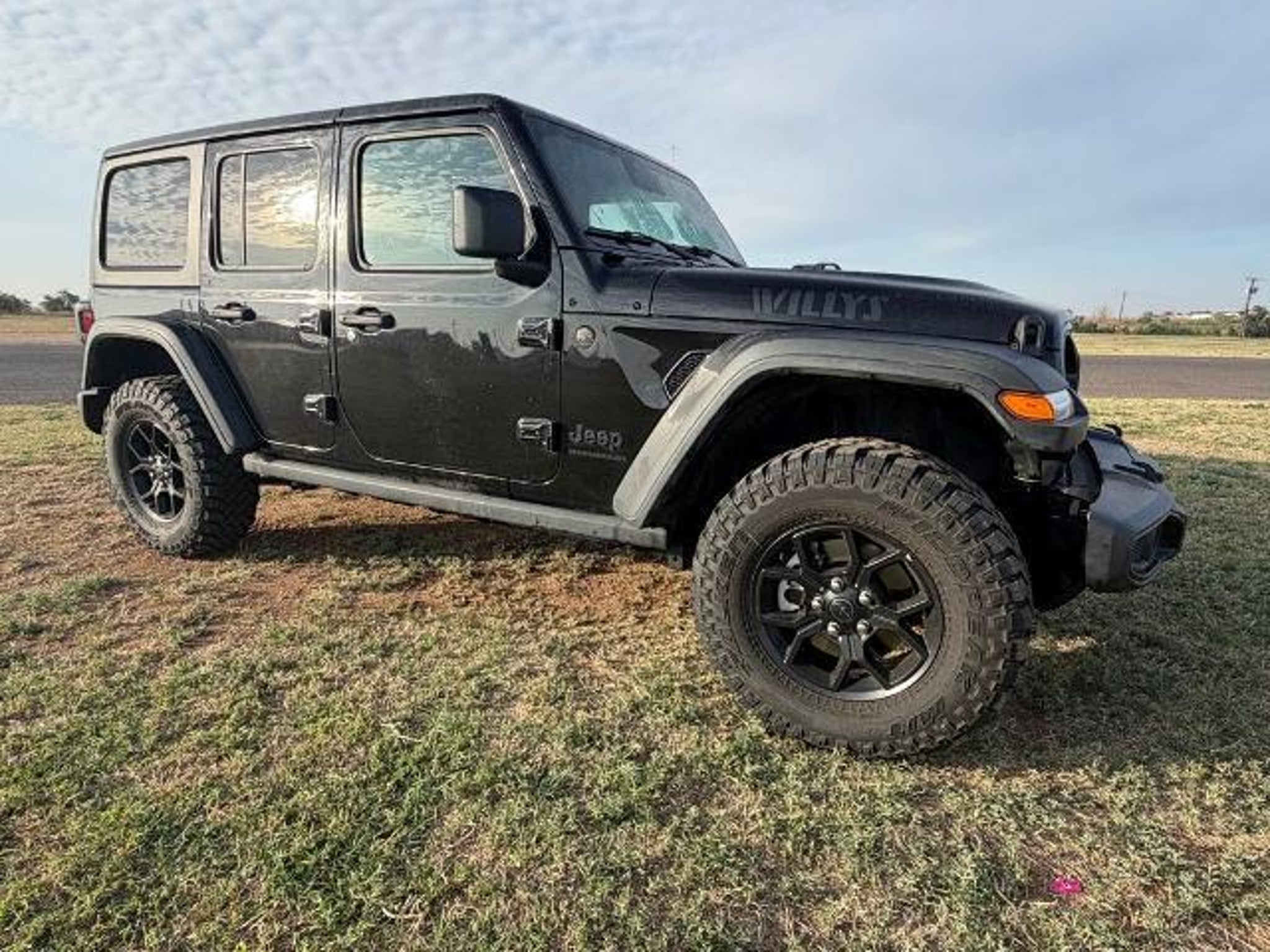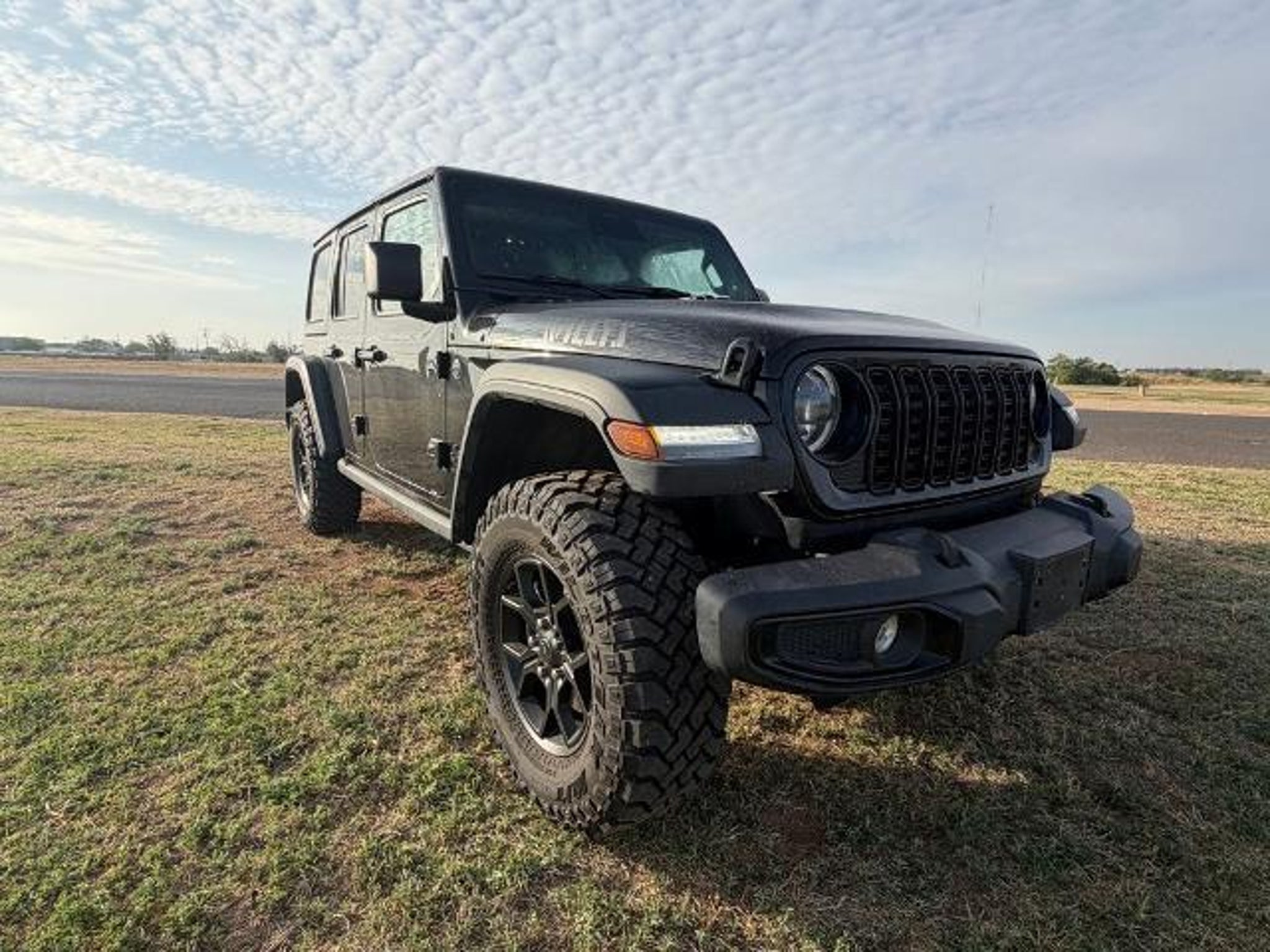 Our One Owner and Clean Carfax 2025 Jeep Wrangler Willys 4 Door 4X4 in Black rides with renowned capability that true adventurers love! Driven by a TurboCharged 2.0 Liter 4 Cylinder supplying 270hp to an 8 Speed Automatic transmission with an Off-Road Plus mode for enhanced trail performance. Dana axles and an electronic locking rear differential help you conquer almost any conditions, and this Four Wheel Drive SUV returns nearly 22mpg on the highway. Eye-catching Willys hood graphics help our Wrangler grab attention with LED lighting, fog lamps, black alloy wheels, fender flares, a sport bar, and a fantastic open-air driving experience when you drop the top, fold down the Gorilla Glass windshield, and remove the doors! You can feel good top up or down in our Willys cabin, thanks to the comfortable cloth seats, wrapped steering wheel, air conditioning, power accessories, pushbutton ignition, auxiliary switches, and 12V power outlets. Uconnect? technology powers your infotainment system to enjoy a 12.3-inch touchscreen, 3.5-inch driver display, Apple CarPlay?, WiFi compatibility, Android Auto?, Bluetooth?, and an eight-speaker audio system. Stay safe as you dominate your days, knowing Jeep has your back with automatic braking, adaptive cruise control, a rearview camera, forward collision warning, trailer sway damping, hill start assistance, and more. The world awaits, and our Wrangler Willys is ready to go! Save this Page and Call for Availability. We Know You Will Enjoy Your Test Drive Towards Ownership!