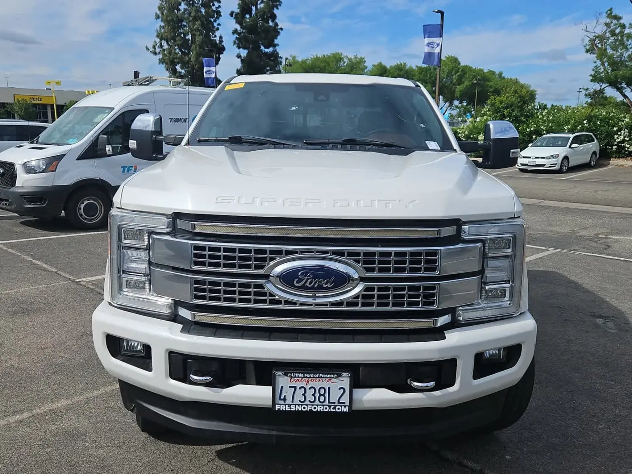 Heated/Cooled Leather Seats, Navigation, Trailer Hitch, Heated Rear Seat, 4WD, Aluminum Wheels, Bed Liner, ENGINE: 6.7L 4V OHV POWER STROKE V8 TURBO DIESEL B20, ELECTRONIC-LOCKING W/3.55 AXLE RATIO, PLATINUM ULTIMATE PACKAGE AND MORE! KEY FEATURES INCLUDE Navigation, Leather Seats, Heated Driver Seat, Heated Rear Seat, Cooled Driver Seat, Running Boards, Premium Sound System, Satellite Radio, iPod/MP3 Input, Onboard Communications System, Trailer Hitch, Aluminum Wheels, Remote Engine Start, Dual Zone A/C, WiFi Hotspot. MP3 Player, Privacy Glass, Keyless Entry, Child Safety Locks, Steering Wheel Controls. OPTION PACKAGES manual push-button engine-exhaust braking and intelligent oil-life monitor, Extra Heavy-Duty 220 Amp Alternator, 3.55 Axle Ratio, 34 Gallon Fuel Tank, GVWR: 11,500 lb Payload Package, Dual 78-AH 750 CCA Batteries, Adaptive Cruise Control & Collision Warning, brake support, Ultimate Trailer Tow Camera System, 360 degree camera system and trailer reverse guidance, Display appears in center-stack screen, NOTE: Does not include customer placed trailer camera, Rear CHMSL Camera, Display in center stack screen, LED Center High-Mounted Stop Lamp (CHMSL) w/cargo light and rear video camera, Lane-Keeping Alert, Twin Panel Power Moonroof, map lights and moonroof switches, tailgate-guard, black box bed tie-down hooks, black bed attachment bolts and BoxLink mounting plates, ELECTRONIC-LOCKING W/3.55 AXLE RATIO, (6R140), SelectShift. 2018 Ford Super Duty F-350 SRW Pickup with White Platinum Metallic Tri-Coat exterior and Black/Dark Marsala interior features a 8 Cylinder Engine with 450 HP at 2800 RPM*. EXPERTS REPORT KBB.com explains Regardless if the 2018 Ford Super Duty pickup is equipped with the 6.2-liter gasoline V8 or 6.7-liter turbodiesel, torque is never in short supply. Acceleration is swift by full-size truck standards, as is passing and pulling power.. WHY BUY FROM US Lithia Ford Lincoln of Fresno has a strong and committed sales staff with many years of experience satisfying our customers needs. Feel free to browse our inventory online, request more information about vehicles, set up a test drive or inquire about financing! Horsepower calculations based on trim engine configuration. Please confirm the accuracy of the included equipment by calling us prior to purchase.