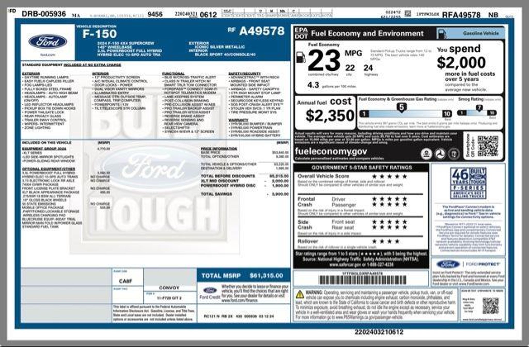 This vehicle comes with a 12 month 12,000 mile comprehensive warranty from Ford Motor Company!! This 2024 Ford F-150 XLT is a powerful and capable truck that offers a wealth of premium features to enhance your driving experience. Key highlights include: - 4WD/AWD - Bluetooth - Electronic Stability Control - Keyless Entry - Lots of Space - Power Package - Remote Start - Tons of Cargo Room - Tow Package - Intelligent Access with Push Button Start - Adaptive Cruise Control with Stop & Go - Ford BlueCruise Equipped (90-Day Trial) - Power Glass Heated Sideview Mirrors - Auto-Dimming Rearview Mirror - Console Worksurface - Partitioned Lockable Rear Storage This F-150 XLT is equipped with the impressive 3.5L PowerBoost Full-Hybrid V6 engine, delivering an exceptional blend of power and efficiency with 22 city/24 highway MPG. The 10-speed automatic transmission and 4WD system provide smooth, confident handling in a variety of driving conditions. The XLT Black Appearance Package elevates the exterior with a bold, distinctive look, featuring a black grille, gray box side decal, black exterior badging, 6 black running boards, and body-color front and rear bumpers. The dark interior appliques and floor shifter complete the premium, refined aesthetic. The Equipment Group 302A Mid adds a host of advanced technologies, including Adaptive Cruise Control with Stop & Go, Lane Centering, Speed Sign Recognition, and the Ford BlueCruise Equipped system (90-day trial). The Power-Sliding Rear Window, Remote Start System, and Heated Front Seats further enhance the comfort and convenience. The Mobile Office Package transforms this F-150 into a versatile workspace, with a partitioned lockable rear storage area and a convenient console worksurface. This 2024 Ford F-150 XLT is an exceptional value, combining rugged capability, cutting-edge technology, and premium comfort features. Experience the difference for yourself ? schedule a test drive today and discover why this truck should be your next adventure companion.