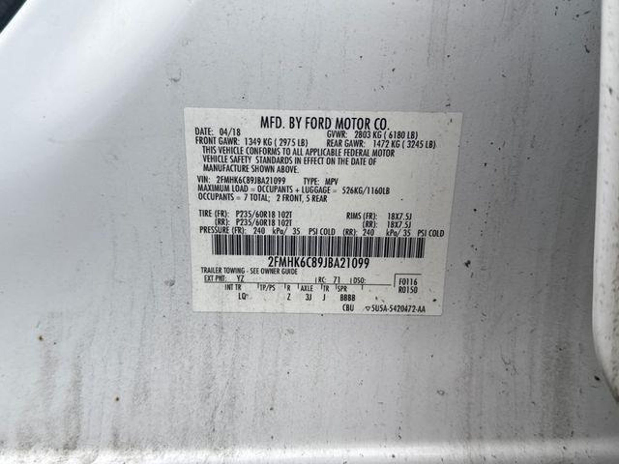VIN 2FMHK6C89JBA21099