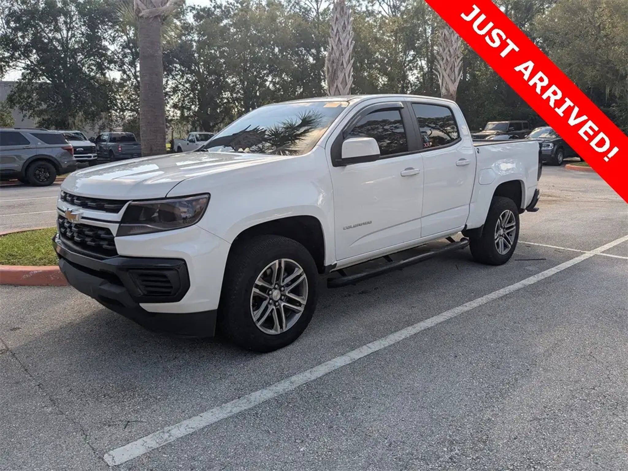 Recent Arrival! 2022 Chevrolet Colorado Work Truck RWD 2.5L I4 DI DOHC VVT 6-Speed Automatic Summit White Clean CARFAX. Equipped with Custom Special Edition (Body-Color Door Handles, Outside Power-Adjustable Body-Color Mirrors, Rear Body-Color Bumper, Spotter Mirror, and Wheels: 18 x 8.5 Dark Argent Metallic Cast Alloy), OnStar & Chevrolet Connected Services Capable (Chevrolet Connected Access Capable and Wi-Fi Hotspot Capable), Preferred Equipment Group 2WT, WT Convenience Package (Electronic Automatic Cruise Control, Extended Range Remote Keyless Entry, EZ-Lift & Lower Tailgate, Remote Locking Tailgate, and Unauthorized Entry Theft-Deterrent System), 4-Wheel Disc Brakes, 4.10 Rear Axle Ratio, 6 Speakers, 6-Speaker Audio System Feature, ABS brakes, Air Conditioning, AM/FM radio: SiriusXM, Apple CarPlay/Android Auto, Bumpers: body-color, Delay-off headlights, Driver 4-Way Power Seat Adjuster, Driver door bin, Dual front impact airbags, Dual front side impact airbags, Electronic Stability Control, Exterior Parking Camera Rear, Front anti-roll bar, Front Bucket Seats, Front Center Armrest, Front wheel independent suspension, Fully automatic headlights, Low tire pressure warning, Occupant sensing airbag, Overhead airbag, Passenger door bin, Passenger vanity mirror, Power driver seat, Power steering, Power windows, Premium audio system: Chevrolet Infotainment 3, Radio data system, Radio: Chevrolet Infotainment 3 System, Rear seat center armrest, Rear step bumper, SiriusXM Radio, Speed-sensing steering, Tachometer, Tilt steering wheel, Traction control, Trip computer, Variably intermittent wipers, Vinyl Seat Trim, and Wheels: 17 x 8 Ultra Silver Metallic Steel. Palm Coast Ford, We're Not That Far! Free deliveries within 200 miles. Call us today to experience the difference, (386) 447-3380.