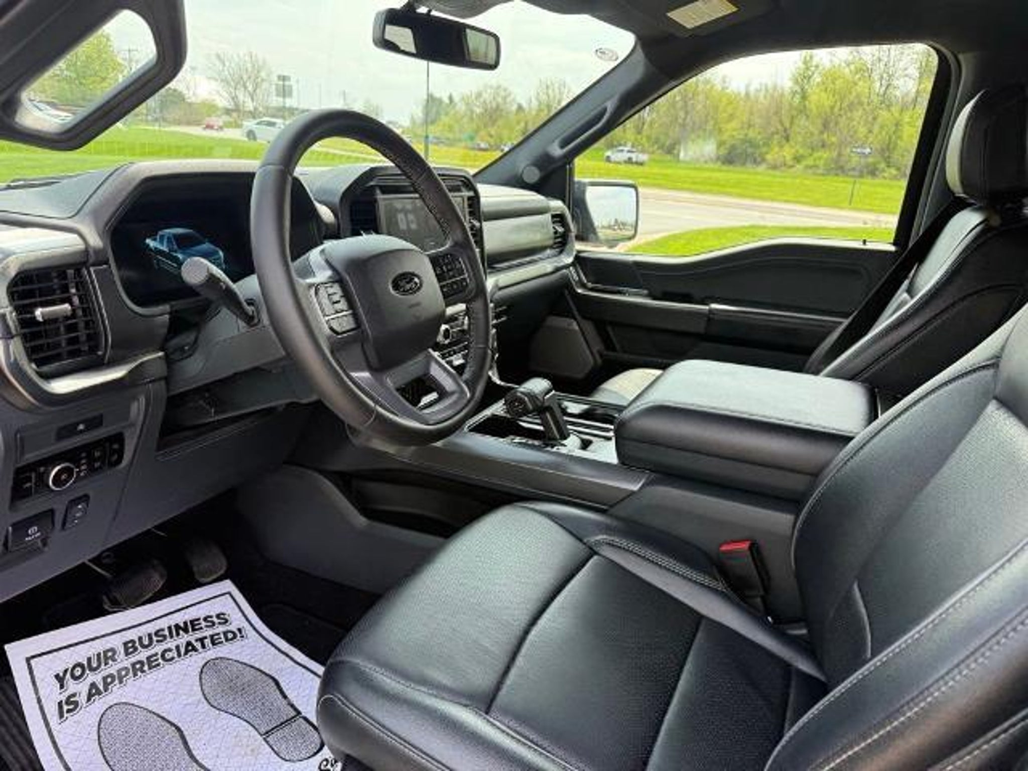 Antimatter Blue Metallic 2025 Ford F-150 Lariat 4WD 10-Speed Automatic 3.5L V6 EcoBoost Recent Arrival! 4WD, 3.31 Axle Ratio, 4-Wheel Disc Brakes, 6 Angular Bright Anodized Step Bar, 8 Speakers, ABS brakes, ActiveX Trimmed Bucket Seats, ActiveX Trimmed Bucket Seats (B), Adjustable pedals, Air Conditioning, Alloy wheels, AM/FM radio: SiriusXM with 360L, Auto High-beam Headlights, Auto-dimming door mirrors, Auto-dimming Rear-View mirror, Automatic temperature control, Black Exterior Badging, Black Grille, Black Taillamp Bezels, Body-Color Front & Rear Bumpers, Body-Color Skull Caps & Door Handles, Brake assist, Bumpers: chrome, Chrome wheels, Compass, Dark Interior Appliques, Delay-off headlights, Driver door bin, Driver vanity mirror, Dual front impact airbags, Dual front side impact airbags, Electronic Stability Control, Emergency communication system: SYNC 4 911 Assist, Equipment Group 501A Mid, Front anti-roll bar, Front Bucket Seats, Front Center Armrest, Front dual zone A/C, Front fog lights, Front reading lights, Front wheel independent suspension, Fully automatic headlights, Garage door transmitter, Gray Box Side Decal, Heated door mirrors, Heated front seats, Heated steering wheel, Illuminated Driver & Passenger Visors, Illuminated entry, Internet access capable: FordPass Connect 5G, Lariat Black Appearance Package, Low tire pressure warning, Matte Black Tailgate F-150 Decal, Memory seat, Navigation system: Connected Navigation, Occupant sensing airbag, Outside temperature display, Overhead airbag, Overhead console, Panic alarm, Passenger door bin, Passenger vanity mirror, Pedal memory, Power door mirrors, Power driver seat, Power passenger seat, Power steering, Power windows, Power-Sliding Rear Window, Radio data system, Radio: B&O Sound System by Bang & Olufsen, Rain sensing wipers, Rear reading lights, Rear seat center armrest, Rear step bumper, Rear window defroster, Remote keyless entry, Security system, Speed control, Split folding rear seat, Steering wheel mounted audio controls, SYNC 4 w/Enhanced Voice Recognition, Tachometer, Telescoping steering wheel, Tilt steering wheel, Traction control, Trip computer, Turn signal indicator mirrors, Variably intermittent wipers, Ventilated front seats, Voltmeter, Wheels: 18 Chrome-Like PVD, Wheels: 20 Chrome-Like PVD, 4WD.