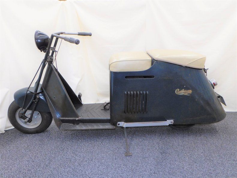 Cushman produced scooters from 1936 - 1965. This 1946 original, unrestored, gyro blue scooter is from the collection of Dennis Carpenter.