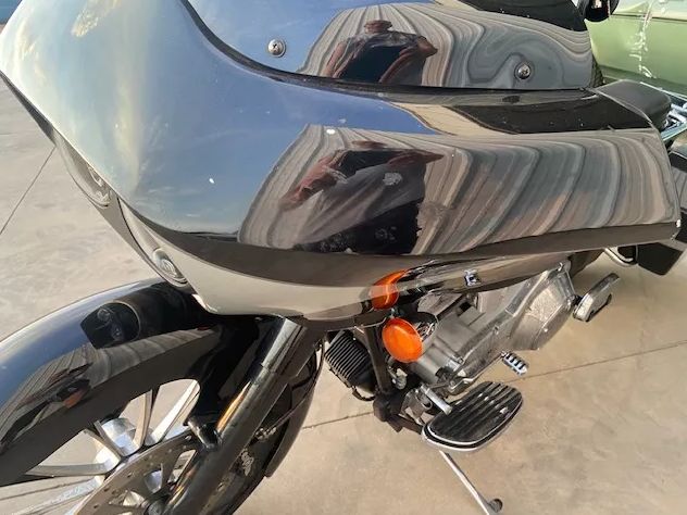 Extremely light garage fire damage as shown (mild staining and plastic damage) in the photos. This bike has had some mild customizing including raked trees, 23-inch (Southern) front wheel, 19-inch matching rear, custom rotors and rear pulley, custom front fender, powder coated forks, Vance and Hines 2 into 1 exhaust, custom bars, seat, air cleaner and more.