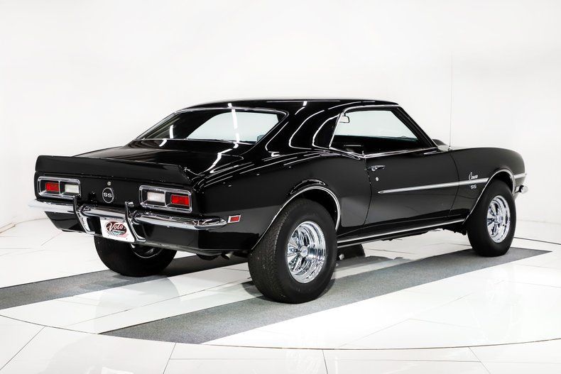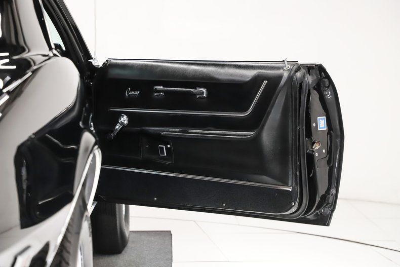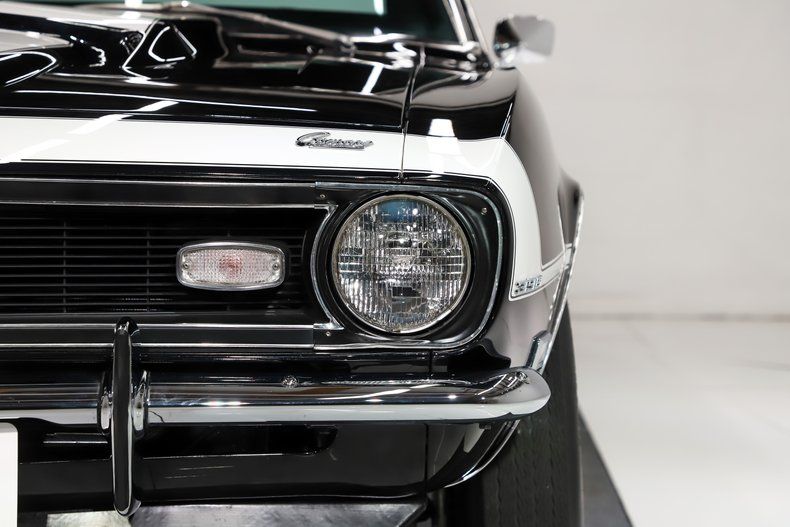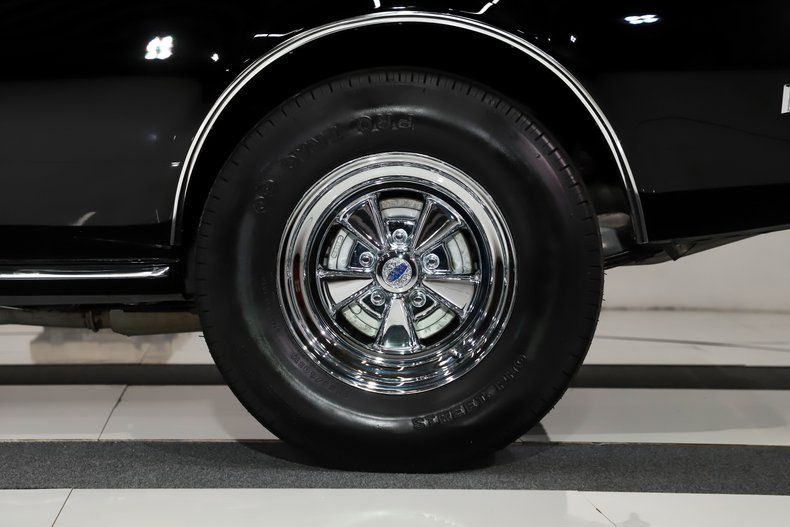 EXTERIOR: The fit and finish is amazing. The sheet metal is perfectly aligned and straight. It has the fiberglass stinger hood and spoilers. Repainted its original Tuxedo Black without a vinyl top. The finish is better than the day it left the factory. Every piece of chrome and trim has been restored or replaced, it has optional bumper guards. Every weather strip and seal has been replaced; glass is crystal clear. Correct T-3 headlights. It's sitting on a set of chrome 15 inch Cragers, obviously wider in back and they're wearing Mickey Thompson tires.