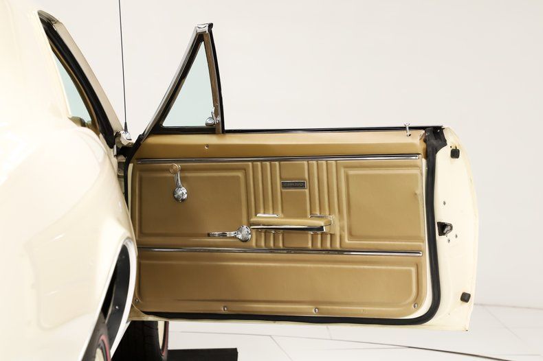 EXTERIOR: The body is in excellent shape: rust free, clean, and straight. Repainted its original Capri Cream color. It's very smooth and glossy. Painted on SS nose stripe and SS blacked out rear panel. It features front and rear spoilers. The chrome, trim, weatherstrips and glass are in great shape. Brand new Vintage style Torque Thrust wheels and a set of BFG radial red line tires.