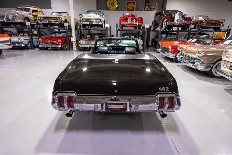 *455 Cu. In. V8 *Edelbrock Single 4 Barrel *Hydra-Matic Automatic Transmission *Power Front Disc Brakes *Power Steering *Well Documented Example *1 of 2,933 '70 442 Convertibles Produced *Black Vinyl Power Convertible Top *Correct Ebony Black Exterior *Black Vinyl Bucket Seats w/ Console *Stock Instrumentation *Odometer Reads: 52,004 Miles