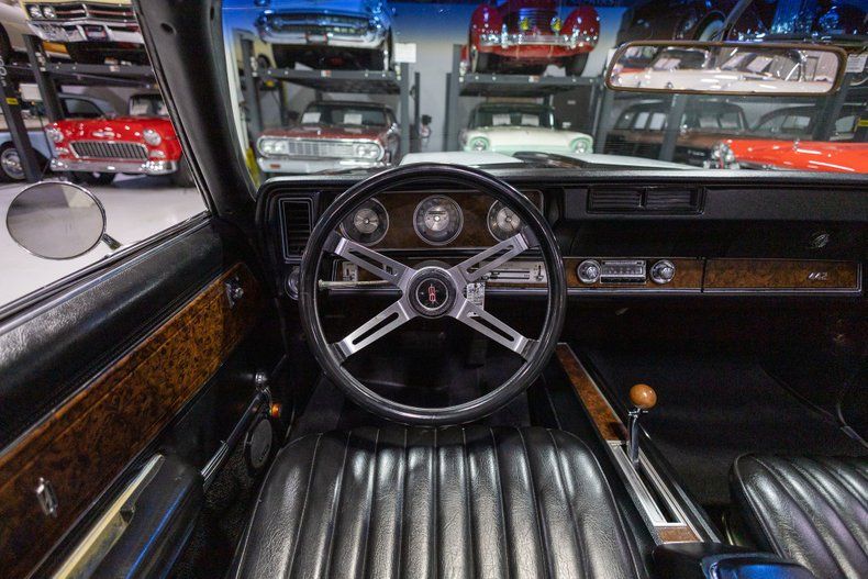 This 1970 Oldsmobile 442 Convertible is a triple black muscle car convertible with great options and desirable documentation! Many would consider 1964 as the kick-off year for an entirely new category in the car market; that being, the muscle car. The first so-called muscle car came into being as an option package by Oldsmobile's GM sister brand, Pontiac, when it released the performance-oriented GTO package on its mid-size car and placed the large Pontiac 389 cubic inch V8 into it. Although Pontiac kicked-off the muscle car race, Oldsmobile was not far behind when, in mid-1964, it debuted its own performance-oriented package, the "4-4-2." The "442" package was essentially a repackaged version of its lesser-known "Police Pursuit" package, and consisted of (and stood for) a 4 barrel carburetor, 4 on the floor 4 speed manual transmission, and 2 (dual) exhausts, along with a beefy V8 and heavier duty suspension and cooling components. As the years progressed through the late-60s into 1970, the Oldsmobile 442 had underwent several major body style changes as did the initial "4 barrel, 4 speed, 2 exhaust" nomenclature with the introduction of automatic transmissions. The 442 was also no-longer merely an option package but had been spun off into its own distinct model line during the muscle car era. Perhaps most noteworthy about the 1970 Olds 442s is the fact that they are considered by some as Oldsmobile's last true muscle cars since their 455 cubic inch Olds V8s were not hampered by the pollution control regulations that detracted from the cars' performance from 1971 and beyond. In addition to the massive Olds big block engine, the '70 442 also came outfitted with other performance-oriented features such as heavier duty suspensions and impressive exhaust systems, along with special 442 appearance items such as unique interiors and identifiable exterior trim. All of the 1970 4-4-2 were 2 doors that came in three body styles, the common Holiday Hardtop, the rare Sports Coupe, and the most luxurious and most expensive Convertible. In total, Oldsmobile produced less than 3,000 1970 442 Convertible which makes this particular example a very rare and desirable automobile. Additionally, this particular 442 Convertible is a well-documented example, coming to us with its protect-o-plate and build sheets. Powering this '70 Olds 442 is a 455 Cubic Inch V8 engine fed by an upgraded Edelbrock single 4 barrel carburetor mounted atop an Offenhauser intake manifold. The 455 V8 is backed by a Hydra-Matic automatic transmission that ensures that just about anybody can take this muscle car for a spin around the block. Exhaust exits the Olds big block via a dual exhaust setup that generates a terrific throaty sound out the rear trumpet-style tailpipes. Being that Oldsmobiles were considered more deluxe cars, they generally came (like this one) with many fantastic options! With power steering, maneuvering in and out of a tight parking space at the local ice cream parlor or car show is almost effortless. Power front disc brakes and power drums in the rear help ensure that you'll be able to bring this 442 to a complete stop much easier. The black vinyl power convertible top is in wonderful condition and it goes up and down with the simple flick of a switch. Riding on a set raised letter BFGoodrich Radial T/A tires mounted on Super Stock II rims, this 1970 Olds 442 has an imposing muscle car look and fantastic ride cruising down the road. The body of this 442 Convertible has been correctly refinished in beautiful Ebony Black paint, accented with white decals on the W25 hood's scoops, completing the exterior look of the car. The interior of this 1970 Oldsmobile 442 Convertible screams luxury! The front Strato-Bucket seats and rear bench have been reupholstered in black vinyl. The center console, matching door panels, black carpeting, padded dash with burl grain inserts, and special Custom-Sport 4-spoke steering wheel are in great shape and retain a nice stock appearance. The instrument cluster is equipped with a 120 MPH speedometer, fuel gauge, and clock, along with indicator lights for the emergency brake, generator, oil pressure, and engine temperature. The dash is finished with an AM/FM push button radio in the center and a locking glove box on the passenger side. Whether you're buying your first classic muscle car or you're adding to your existing collection, this 1970 Oldsmobile 442 Convertible would make a wonderful choice. Give Ellingson's a call today at 763-428-7337!