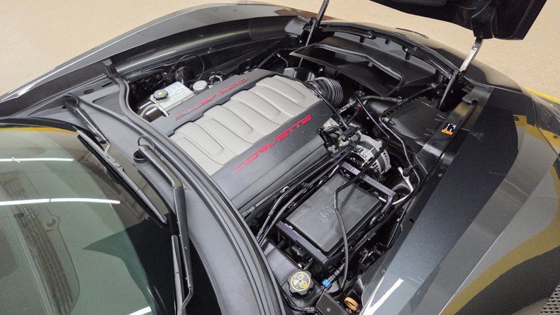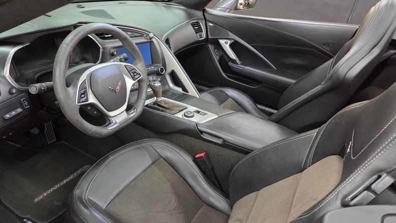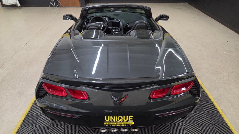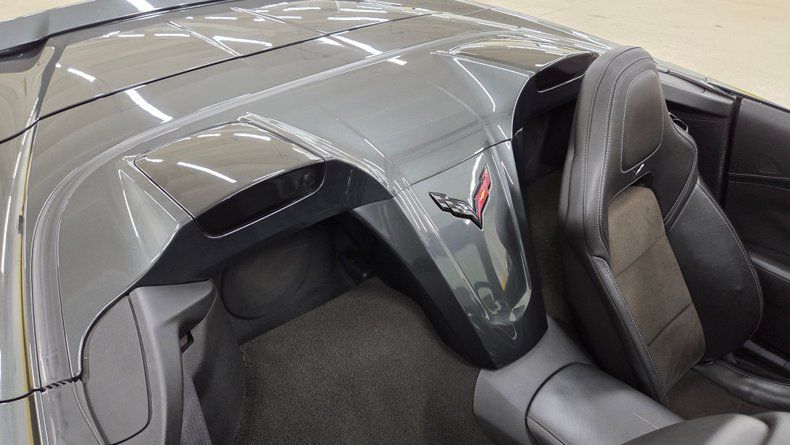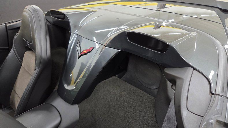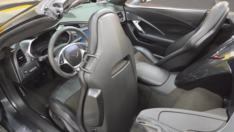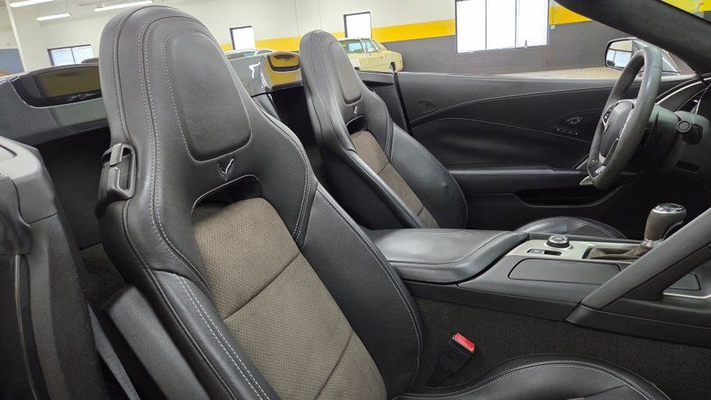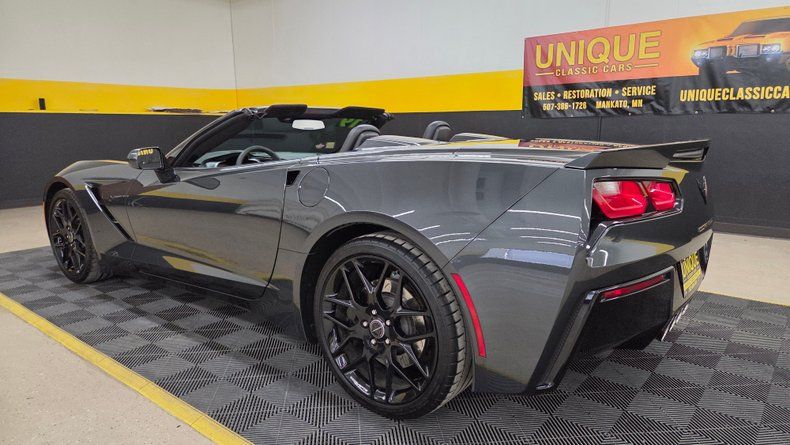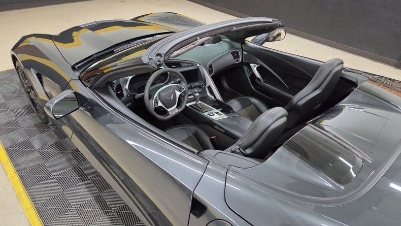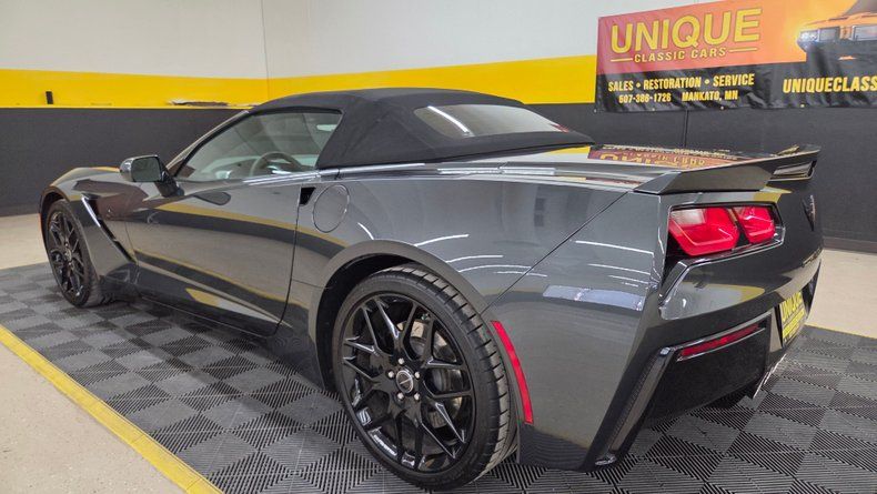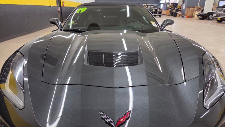2019 Chevrolet Corvette Stingray C7 convertible. 3LT trim equipped with the Z-51 performance package, featuring a 6.2-liter V8 engine mated to an 8-speed automatic transmission with overdrive. Relatively low mileage of 49,871 miles. The exterior paint is Watkins Glen Gray with a black convertible top. A sophisticated two-tone suede and leather interior in charcoal and gray, with modern amenities including memory seats, power windows, locks, and a heads-up display. The infotainment system is user-friendly, with heated and ventilated seats and selective ride control. The convertible top is fully functional and in excellent condition, featuring a glass rear window with electric defog. Included are very nice Stingray front and rear mats. On the road the Corvette's has great handling, a smooth ride, and engaging driving dynamics with an enjoyable exhaust note.