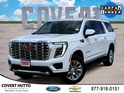 Welcome to Covert Chevy of Hutto, proudly serving Central Texas with quality pre-owned vehicles and exceptional value. Call Covert Ford of Hutto at 512-759-1515 to schedule your VIP appointment or learn more about this vehicle today.This 2025 GMC Yukon XL Denali is a true standout in the full-size SUV segment. With its commanding presence, advanced technology, and uncompromising comfort, this Yukon XL Denali is poised to elevate your driving experience.- 4WD- Blind Spot Monitoring- Clean CARFAX- Cooled Seats- Heated Seats- Leather Interior- Local Trade- Navigation- Non-Smoker- One OwnerThe Yukon XL Denali's powerful EcoTec3 6.2L V8 engine, paired with a smooth-shifting 10-speed automatic transmission, delivers the perfect balance of performance and efficiency. Magnetic Ride Control suspension and an adaptive 4WD system ensure a confident and composed ride, whether navigating city streets or venturing off the beaten path.Step inside the cabin and be enveloped in the epitome of luxury. Perforated leather seating surfaces, heated and ventilated front seats, and a heated steering wheel create an unparalleled level of comfort. The premium Bose audio system and 16.8-inch diagonal GMC Infotainment System with built-in navigation and SiriusXM with 360L provide endless entertainment and connectivity.Safety and convenience are also at the forefront, with features like the Heads-Up Display, Blind Spot Monitoring, and the AutoSense Hands-Free Power Liftgate. The Yukon XL Denali's impressive list of advanced driver-assistance technologies and premium amenities make it the ultimate family hauler.Whether you're embarking on a cross-country adventure or navigating the daily commute, this 2025 GMC Yukon XL Denali is the perfect companion. Experience the uncompromising capability, refined luxury, and exceptional value that this remarkable SUV has to offer.Family owned since 1909, Covert Ford of Hutto is proud to serve drivers across Central Texas including Austin (78701, 78705, 78746, 78753, 78758), Hutto (78634), Pflugerville (78660), Round Rock (78681), and Georgetown (78628, 78626). Experience the trusted service and selection that Central Texas drivers have relied on for generations.
