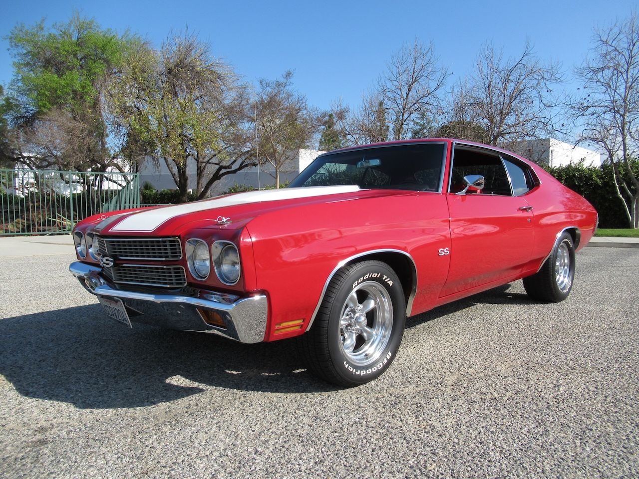 ![]() Click on the image for a larger picture. 1970 CHEVROLET CHEVELLE 2 DOOR HARDTOP Check out this Cranberry Red Chevelle with a pair of White SS Stripes, Cowl Induction hood, New Chrome SS Bumpers, dual mirrors, tinted glass and a set of 15 inch polished American Racing Wheels wrapped in B.F. Goodrich Raised White Letter radials. Under the hood sits a 350/330 HP GM crate motor with chrome GM Valve covers, polished Edelbrock aluminum intake, Edelbrock 4 barrel carburetor, HEI ignition, Factory A/C with R134 conversion, power disc brakes, power steering, headers with dual exhaust and performance mufflers with some correct Chrome tips exiting out the rear. Power gets put to the road through a 700R4 4 speed automatic overdrive transmission followed by a freeway friendly 12 Bolt rear differential, front and rear sway bars and some upgraded tubular control arms up front to help with the handling. The Red vinyl interior is very nice with new Legendary Upholstery on the original bench seat, SS door panels, Dakota Digital gauge package in an SS style dash cluster, tilt steering column with custom 3 spoke steering wheel, Alpine AM/FM CD stereo with Bluetooth connectivity, kick panel speakers and a USB port for charging your devices. 1970 seems to be the most popular and noticed years of the Chevelle and prices seem to be soaring. Although this is not a restored show car it sure is much more affordable and just as much fun to drive!