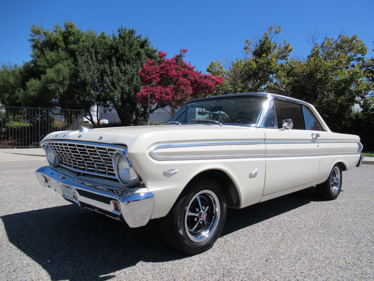 ![]() Click on the image for a larger picture. 1964 FORD FALCON FUTURA Not as expensive as a Mustang but just as fun! This nice little Falcon is finished in Wimbledon White with Black vinyl Bucket seat interior per the door tag and has a factory center console as well. Under the hood sits an upgraded 302 V8 with just a bit more power than the original 260. An aluminum radiator was added for better cooling, electronic ignition, chrome engine dress up kit as well as a nice set of Doug’s coated headers followed by a Flowmaster dual exhaust all the way out back. The power gets put to the road with a Fordomatic transmission, 8 inch rear differential with a 3.25 ratio for cruising, KYB gas shocks for a comfortable ride, dual reservoir front disc brakes and finally some 14 inch Magnum wheels for that cool vintage muscle car look. This un-restored but clean driver is ready for your own personal touches.