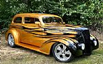 ![]() Click on the image for a larger picture. 1937 CHEVROLET MASTER DELUXE 2DR. SEDAN This 1937 Chevrolet Sedan street rod was acquired by the owner in 1997 and subsequently refurbished and modified. Work consisted of chopping the top, modifying the hood, rear fenders, and side panels, adding a power-operated sunroof, repainting the body, and installing a Progressive Automotive fabricated steel chassis, a front air-ride suspension system, and a GM Performance crate 454ci V8 linked with a 700R4 four-speed automatic transmission and a Currie Enterprises 9? rear end. The car is finished in Sundance Gold with airbrushed black flames over a custom Fawn Gold and Cream leather interior with wood grain and black leather trim, and features include Arizona Speed & Marine electronic fuel injection, Vintage Air climate-control and Front Runner accessory systems, power steering, power front Wilwood disc brakes, 18? and 20? Intro Twisted Matrix wheels, Dakota Digital instrumentation, power-adjustable front bucket seats, and an Alpine CD stereo linked with two Alpine amplifiers and JL Audio subwoofers. This Chevrolet street rod is now offered on dealer consignment with a 2006 issue of Street Rod Builder magazine featuring the car, build invoices, parts instruction manuals, award jackets, and a clean New Jersey title listing the car as a 1937 Chevrolet. The body was repainted in Sundance Gold with black flames accented by airbrushed shadows during the refurbishment. Features include a chopped roof, a one-piece hood with side louvers, a Jim Wrench grille, an Audi-sourced power-operated sunroof, extended side panels, Rodtronics electric door and trunk poppers, shaved drip rails, molded fender-mounted headlights and taillights, and body-color mirrors and running boards. There is a paint chip on the right rear fender. The 18? and 20? Intro Twisted Matrix wheels are mounted with BF Goodrich g-Force T/A KDW tires measuring 225/45 up front and 265/50 out back. The Progressive Automotive fabricated steel chassis features tubular control arms, power rack-and-pinion steering, and an Air Ride Technologies front air suspension system. Braking is handled by power-assisted Wilwood front discs and Ford-style rear drums. The cabin features power-adjustable front bucket seats and a custom rear bench trimmed in Fawn Gold leather upholstery, which extends to the custom center console, dashboard, and door and rear panels. The interior is accented with wood grain and black leather trim, and features include a Bitchin’ Products dashboard, black-finished billet hardware, a concealed Air Ride Technologies system controller, Vintage Air climate control, a Painless wiring harness, modular door contacts, power windows and mirrors, and black anodized aluminum pedals. An Alpine Bluetooth-capable stereo is linked with mid-range speakers, two tweeters, and trunk-mounted 1200-watt Alpine amplifiers and JL Audio 8? subwoofers. There are scratches in the wood trim by the left door handle. The Lecarra steering wheel is mounted to a tilting column and sits ahead of a center-mounted Dakota Digital instrumentation display. The digital odometer shows 6k miles. The GM Performance crate 454ci V8 was installed during the build and features Arizona Speed & Marine electronic fuel injection, a chrome Vintage Air front runner system, chrome dress-up components, electronic ignition, Lokar throttle linkage, a finned intake manifold and valve covers, and tubular exhaust headers. An aluminum radiator with three electric cooling fans has been fitted. Power is sent to the rear wheels through a 700R4 four-speed automatic transmission and a Currie Enterprises 9? rear axle. A stainless steel dual exhaust system with Magna Flow mufflers has been installed. The build invoices, parts instruction manuals, an issue of Street Rod Builder magazine, many Trophy's and jackets presented as awards are included in the sale. Interesting trades are welcome!