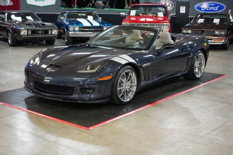 This 2013 Chevrolet Corvette Grand Sport Z16 Convertible combines wide-body performance with open-air excitement. With just 37K original miles, it's powered by the legendary 6.2L LS3 V8 paired to a 6-speed automatic transmission and 2.73 rear gears for smooth, confident performance. Finished in deep dark blue over a striking black and white leather interior, it features a power convertible top, dual-zone climate control, navigation, and satellite radio. Staggered chrome Grand Sport wheels wrapped in Continental ExtremeContact tires enhance its aggressive stance. With four-wheel disc brakes and Corvette-bred handling, this Grand Sport delivers true American performance.