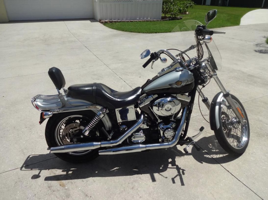 2003 Harley Davidson "Dyna Wide Glide" Motorcycle, 100th Anniversry Edition! Super Low Miles! As New!! 88ci Factory Motor with Twin Cams, Black & Silver in Color. New in-the-box 100th Anniversary Gold Key Package! Including Sissybar Flag. Leather Tank Panel, Medallion, Handlebar Clamp, Hand Grips, Helmet Bag. Gold Key, Motorcycle Cover new in the box! 100th Anniversary Side Bags. Original Seat with Medallion. Tachometer, Heel Stirrups. Lowered 2-Inch Kit (Original/Comes with the sale) .. Don't miss this Pristine Investment Quality 100th Anniversary Edition! Harley Davidson! Priced to Sell @ $9,500. Door-to-Door Shipping Quote available upon request. Call Mark Graves (941) 204-9415 Humpty Dumpty's Classics / Sarasota, FL