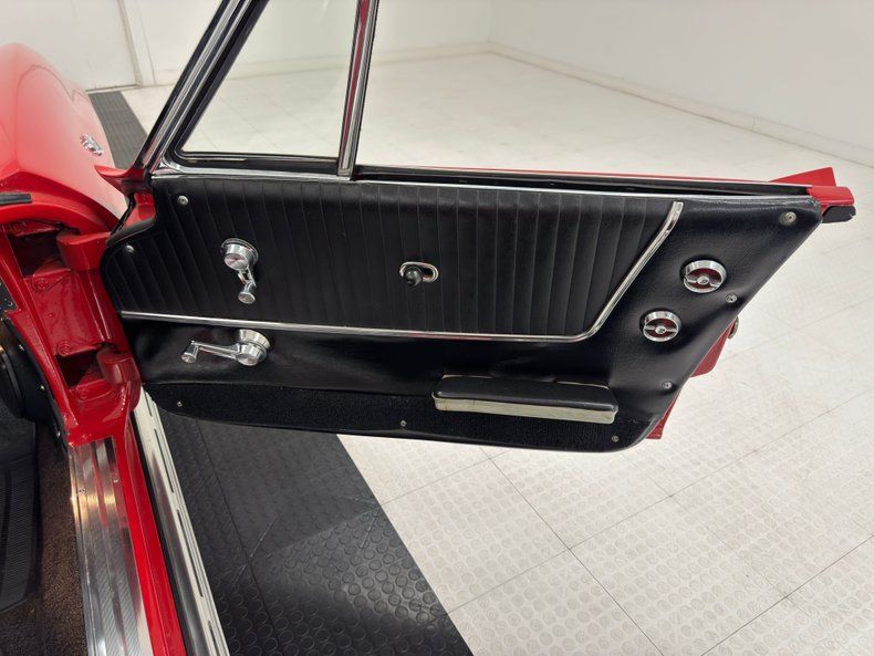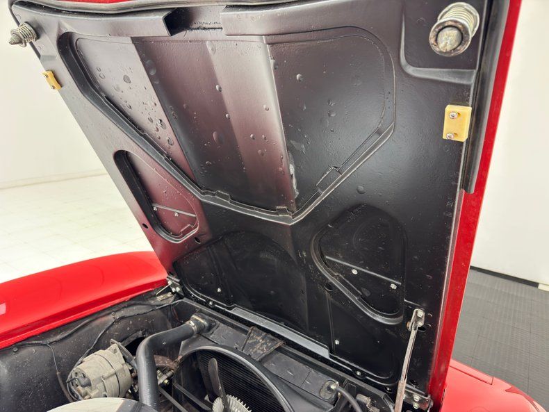 Little Red Corvette is not just a great song, it's a great presentation when it's the real thing! And this one presents with two stage Riverside Red coverage and if cars with red paint get more tickets, we'd be willing to take one for the team in this stunner. Simulated aluminum air intakes are mounted on the hood flanking the raised spear, and these would wave goodbye for the 1964 model making it unique for '63. But 63 and 64 share the fender vent configuration, two vertical depressions in the fiberglass that suggest forward movement. While on the side, let's note the epic side pipes with the vented cover that aims to dissipate heat, but also absorbs it, so watch those calves! 15-inch wheels with knock offs are the perfect complement to the profile which bookends with pointed ends and chrome bumpers. The white canvas top is in great shape and its rear plastic window is crystal clear. Paint, metalwork, and emblems are all in excellent condition and we could not find any glaring exterior flaws.