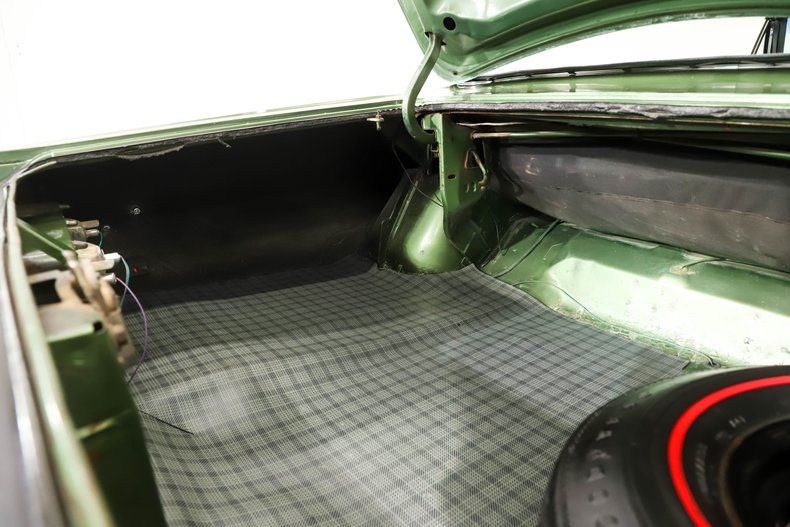 TRUNK COMPARTMENT: It's amazing this convertible still has its original trunk pan metal, because everyone knows the pans rusted out in most of these Mopars. It does have some light surface rust, but it is still very solid. It has the original quarter panels too. The paint under the lid and the jamb appears to be original with the original weather strip. It has a reproduction rubber mat. Complete with a redline spare and jack assembly. The VIN number under the weather strip matches the car.