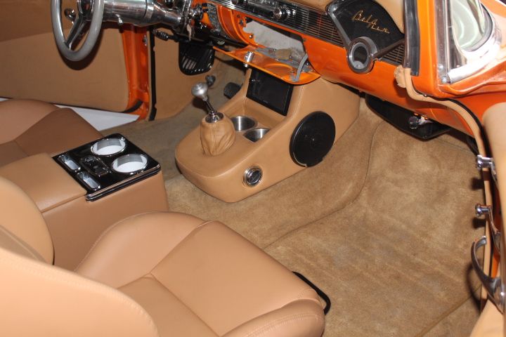 1956 Chevrolet Bel Air 2 Dr. Hardtop. Over $100,000 spent on restoration! LS2 Frame off with powder coated custom frame see photos, a California car, rust free, it has low miles on the frame up restoration,it has photos of both interior options bucket seats or bench,you decide which 1 you want just put in a a lq9 ls2 350 v8,finished in Lamborghini Pearl Orange with White 2 tone, with full 2 tone leather interior and trunk,leather stitched dash,custom gauges, custom sound system, 4 wheel disc brakes. Full chrome Foose wheels 18 & 20s, 2 1/2 in dual exhaust, S/S and chrome are excellent all new, all tinted glass, aluminum S/S tilt power steering lines, polished aluminum front runner system with electric fan, valve covers, headers, aluminum Fluidyne rad., new gas tank and fuel sender, Ford 9 inch posi, new exhaust gaskets, electric fuel pump, chrome horns, it does new power brakes, aluminum hood hinges, new battery, wipers, arrow straight body, finished wheel wells in body color, custom polished tilt steering column, tubular control arms, front coil over shocks, 4 wheel disc brakes,custom 18 and 20 in chrome wheels, custom console for custom stereo and shifter, lowered 2 inches, custom aluminum steering wheel, seat belts, new S/S door sill plates, custom aluminum shifter, brand new battery, never rusted with no patch panels, no leaks from engine,this car runs and drives like new, emergency brake not hooked up, it only needs a new owner, we were told by the owner he bought the car and decided he wanted my 56 full custom and traded it to me, he stated it was a new build and had over $100,000 spent. I have no receipts for all the work, look at the car and decide if its what you want, I may take a trade.price $85995