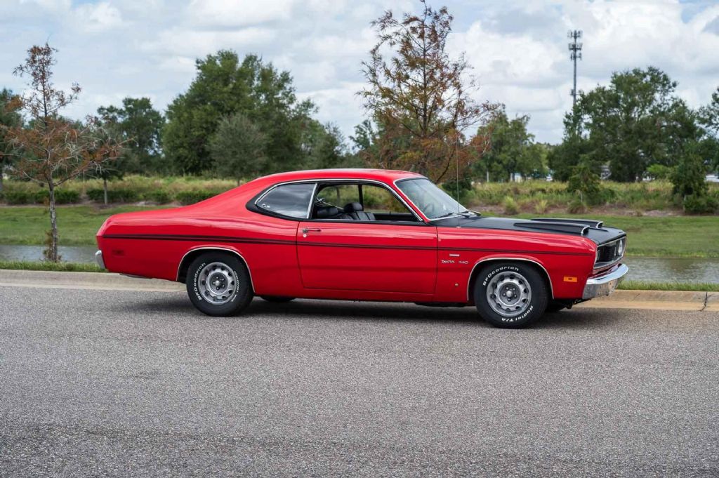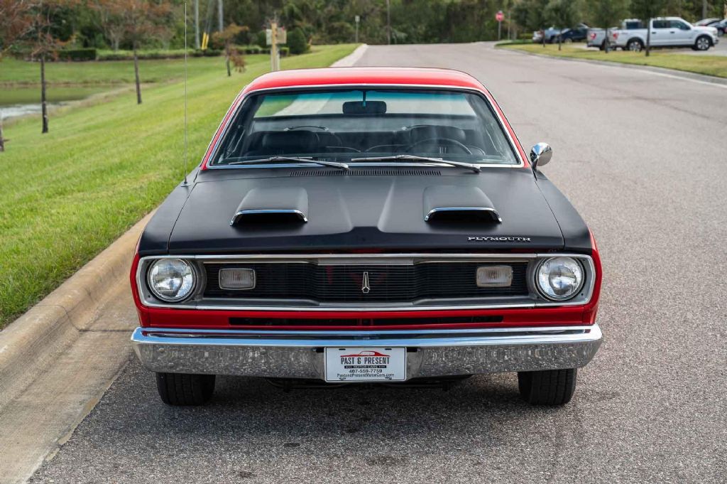 1970 Plymouth Valiant looks just like a Dodge Duster Demon, 340 V8 Engine, Automatic Transmission, Bench Seat, Column Shift, Has the desirable hood with 2 hood scoops, Great Sounding X Pipe Dual Exhaust, BF Goodrich Radial T/A Tires. Original Owner's Manual and a Full Build Sheet included. While we do our best to provide the highest quality muscle cars with an honest and reliable description and realize the importance of transparency when selling vehicles. That being said, we have not built, modified, changed or personally owned this vehicle. Whether this vehicle is consigned or owned by Past & Present Motor Cars we do not know the vehicles complete history since new. We want to be clear and try to answer any questions our customers might have prior to purchasing. Additionally, we not only welcome but we encourage 3rd party independent inspections. Please inquire prior to purchase to make sure the advertised vehicle has not already been sold. We list our vehicles on multiple websites and a vehicle can sell at any time. If a customer chooses to purchase sight unseen (many of our customers choose this option) the customer accepts the vehicle AS IS and WHERE IS and understands we cannot address concerns after purchase. For this reason, it's important all concerns are addressed prior to purchase. We make every effort to present accurate and reliable information, but use of this information is voluntary, and should only be deemed reliable after an independent review of its accuracy, completeness, and timeliness. It is the sole responsibility of the customer to verify the existence of options, accessories and the vehicle condition before time of sale. Financing is Available with low rates and Vehicle Shipping is available from our Showroom to your Garage. A Classic Car Warranty is Available for Purchase from a 3rd Party. Please speak to our Sales Associate or Company Representative for more information. Our team is working and available anytime by Phone or Text for your convenience at 407-559-7759. Thank you for your interest!