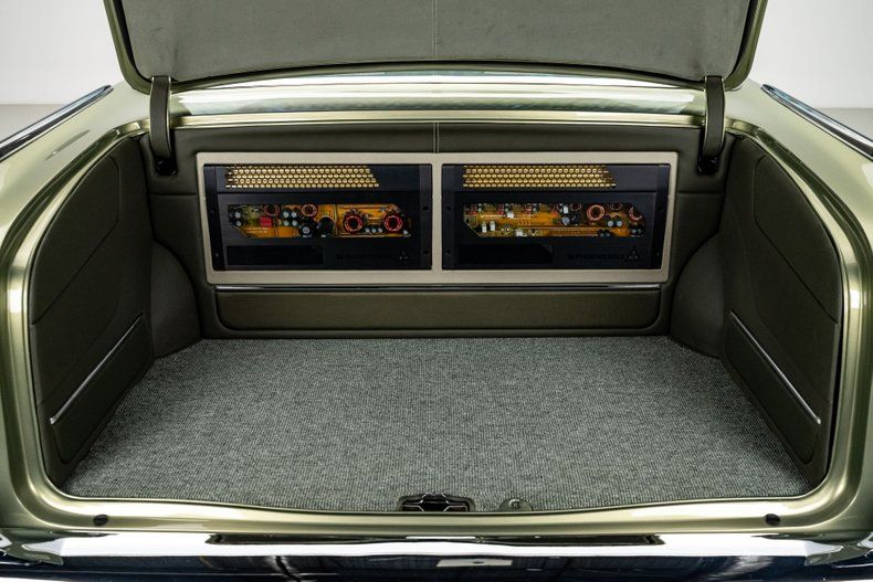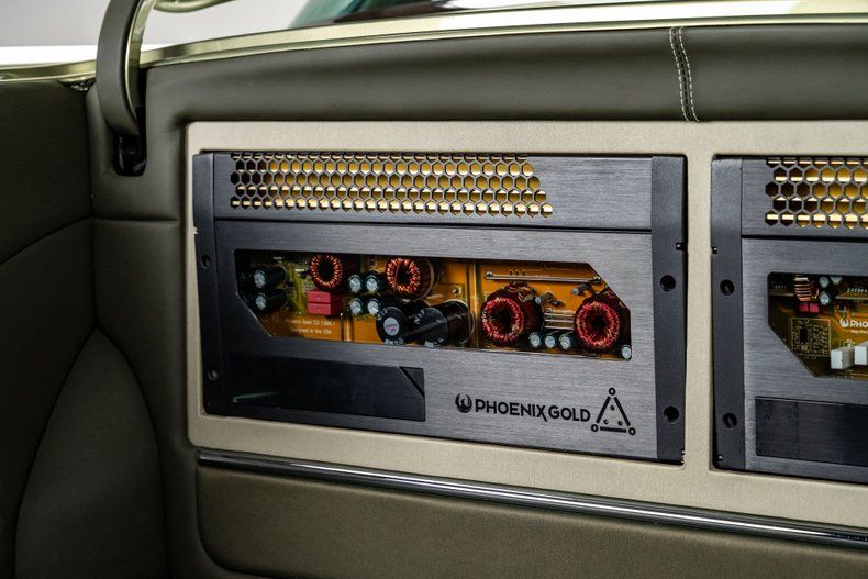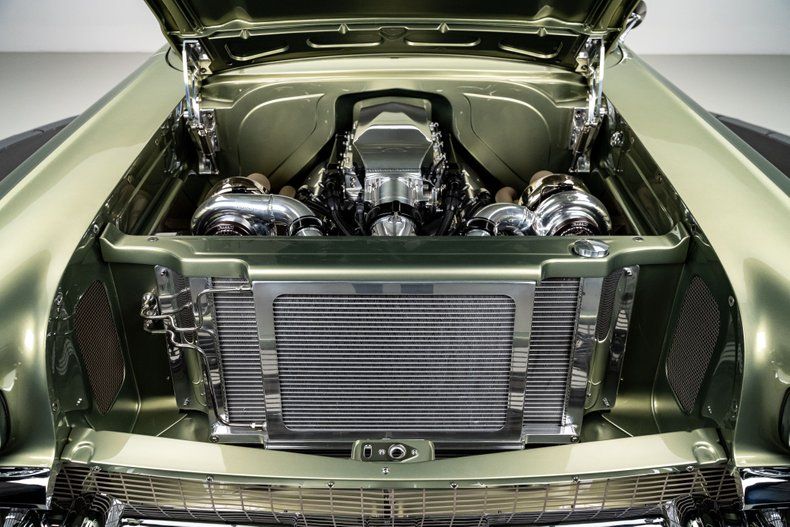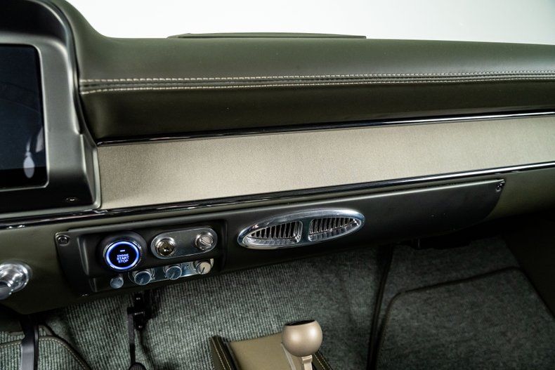 Inside, the custom leather green bench seat interior is a true work of craftsmanship, marrying classic style with modern luxury. A Holley digital touchscreen dash keeps you in control of every performance setting, while the in-dash selectable engine tune allows you to fine-tune your driving experience at the touch of a button. With features like push-button start, power windows, and a custom upholstered trunk complete with hand-fabricated subwoofer enclosures and dual hidden batteries, this car offers the ultimate in both luxury and performance.