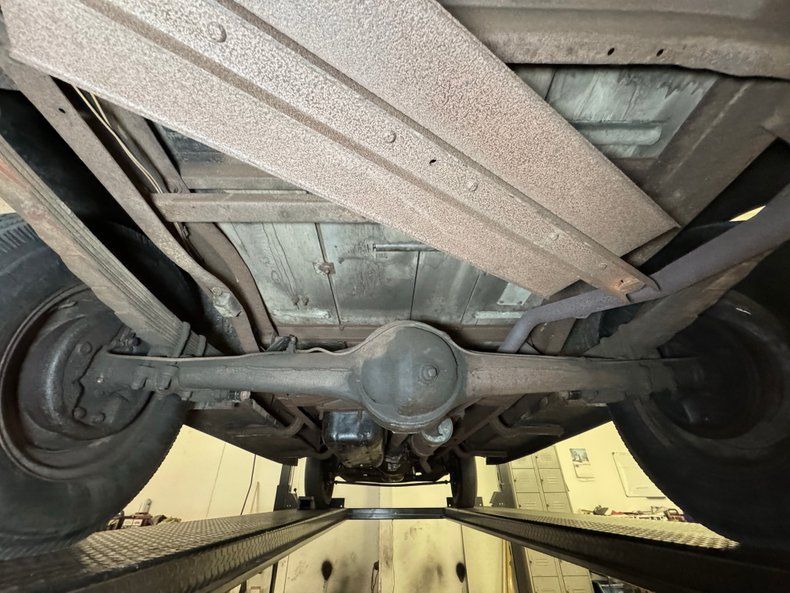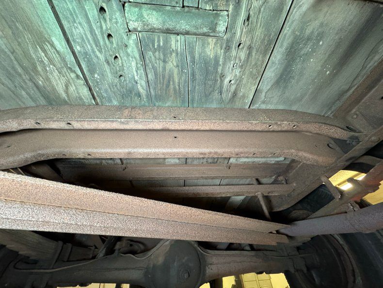 Undercarriage A fine coating of surface rust is seen on all the undercarriage surfaces that have not been oiled either from the engine, or wheel grease. Things remain structurally sound with no rust through, and it appears a recent exhaust system has been installed. Body hangers have surface rust but are still holding strong on the running boards. Leaf spring suspension provides the ride, and drum brakes are on all 4 corners.