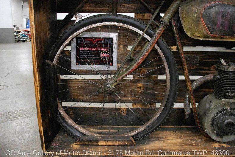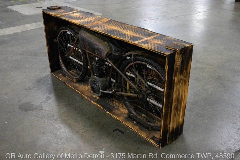 GR Auto Gallery is thrilled to present this 1926 Harley Davidson Peashooter Racer Wall Art for your consideration. This unique piece features a completely custom-built design, showcasing a torched wooden frame that brings a rustic charm to any space. The Peashooter Racer was powered by a 350CC single-cylinder engine with overhead valves, capable of reaching a top speed of 100 MPH in its day. Although it is in no current state of running this piece retains an awesome conversation starter and great memorabilia for any man cave. Have us assist with shipping it to you anywhere in the United States! Don't hesitate to call us with any questions or for more information.