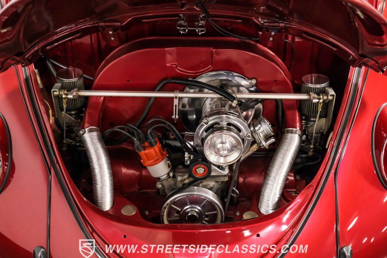 1500cc Engine Dual EMPI Polished Carburetors 4-Speed Manual Rancho Transmission with Freeway Flyer Gears CB Performance Polished Pulley Serpentine Belt System EMPI Stainless Steel Dual Exhaust New Wire Harness Sunburst Sizzle Metallic Paint Sunroof EMPI Sprintstar 15" Wheels 145/R15 Front, 165/80R15 Rear Tires Integrated Turn Signals in Headlights Bone-Colored Interior with Bucket Seats Custom Banjo Steering Wheel Vintage Speed Shifter Kenwood Bluetooth Stereo with Amp and Subwoofer Custom Red Underdash Lighting Knee Shelf Restoration Photos Recent $3,000 Professional Service Build Documentation