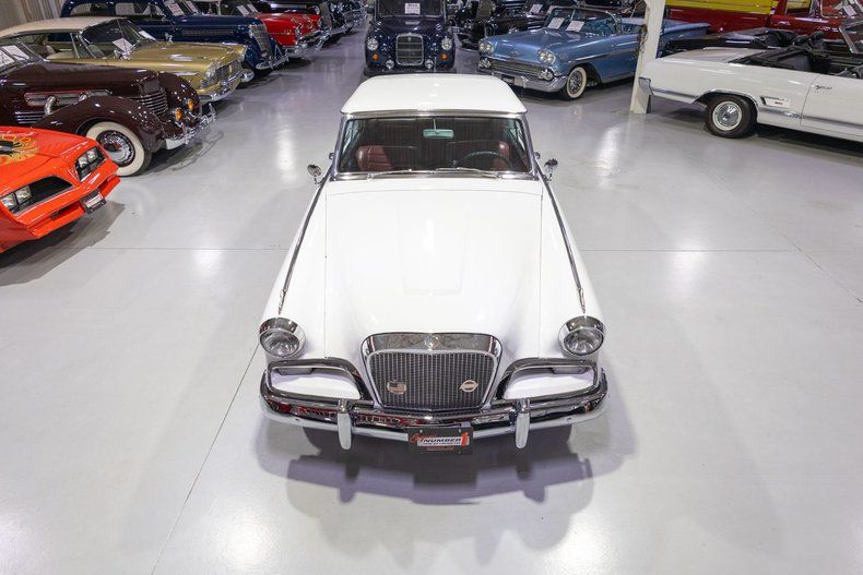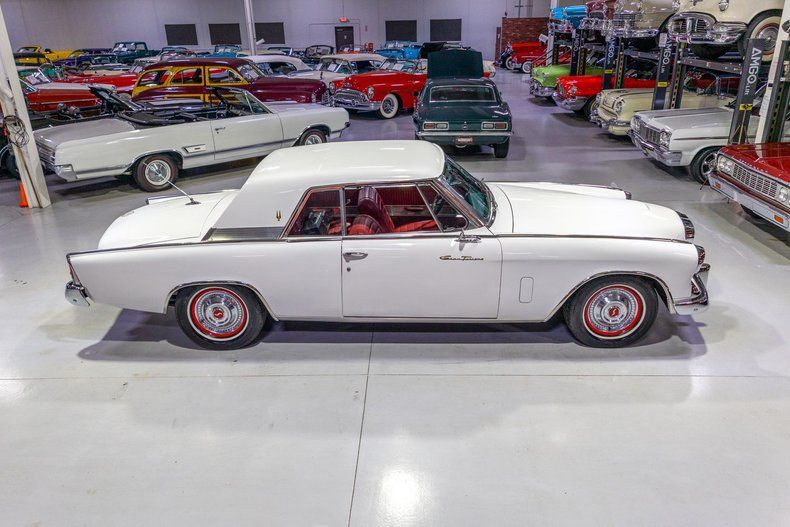This 1962 Studebaker Gran Truismo Hawk sports a European design influences with fantastic options and is ready to become your next great American classic! By the early 1960s, Studebaker was struggling as evidenced by a sales drop of over 20 percent in 1961 compared to 1960. Perhaps an even more obvious showing of Studebaker's financial troubles is best shown by a comparison of its sales of 103,000 units in 1961, compared to Chevrolet which sold 343,000 Bel Air models; yes, you read that right, a single Chevrolet model outsold the entirety of Studebaker's lineup in 1961. Looking to shake things up, Studebaker's newly minted president, Sherwood H. Egbert, turned to his friend Brooks Stevens, a renowned industrial designer who transformed Willys' passenger car line in the mid-50s, to restyle Studebaker's aging Hawk line. The resulting car was sporty yet luxurious, modern yet timeless, and European-looking but still proudly American. In addition to a brand-new look and feel, the Hawk name was also updated from the standard Hawk to the Gran Turismo Hawk (or GT Hawk for short). The new 1962 Studebaker Gran Turismo Hawk was introduced to the public on the evening of Sunday October 29, 1961, during an advertisement on the famous "Mr. Ed" television program and the next day the '62 GT Hawk was available for public viewing in Studebaker's dealerships nationwide. Despite initially being based on Raymond Loewy's gorgeous '53 Starliner Coupe, the 1962 Gran Turismo looked like a brand new car from nearly every angle, both inside and out. At the nose, a brand new stamped grille with large heavy chrome surrounding band gave the new GT an elegant European look up front. Perhaps the most notable changes were visible from the Gran Turismo's side profile. The roofline was flattened and squared off, further modernizing the GT Hawk's side silhouette. The side beltline trim was also removed in 1962 and replaced with bright rocker panel moldings, providing for a cleaner, updated look as well. Stevens also removed the Hawk's b-pillar returning the Hawk to an open hardtop look, something not seen in the Hawk line since 1958. The rear-end treatment was also updated considerably. Stevens' design was quick to remove the outdated-looking fins on rear quarter panels. The decklid also sported updated trim comprised of a with a simulated grille design. The rear window was also modernized with a new recessed appearance, completing the modernization of the Hawk's exterior. The GT Hawk's interiors were also upgraded considerably during the major '62 redesign. 1962 was actually the second year for bucket seats in the Studebaker Hawk and the design for 1962 was significantly updated from the previous year and now featured a center console with a small storage compartment and ashtray incorporated into the layout. The other substantial update occurring in the '62 Gran Turismo's interior was the new-look, woodgrain-trimmed, three-panel instrument cluster that almost looked like it was straight out of an airplane's cockpit with a touch of European luxury. While the new '62 Gran Turismo Hawk outsold the '61 Hawks by more the 2.5 times, a mere 9,335 GT Hawks were produced in 1962 which makes this particular example quite a rare piece of automotive history. This particular Gran Turismo comes to us from the hands of a southern based collector who clearly took great care of this classic Studebaker while under their stewardship. Under the hood on this '62 GT Hawk is a 289 cubic inch Studebaker V8 fed by a single 2 barrel carburetor that together were said to have created 210 horsepower when new. The Studebaker 289 is mated to an Automatic transmission that makes this Gran Turismo an easy car for just about anybody to take for a spin around the block. Exhaust exits this Studebaker's power plant via dual exhaust setup that generates a terrific throaty sound out of the rear tailpipes. This '62 Studebaker GT is loaded with options! With power steering, squeezing into a tight parking space at the local car show or drive-in is almost effortless and can be accomplished one-handed. A pair of chrome outside mirrors further help with parking efforts and improve the overall driving experience because you have improved visibility from the cockpit of this classic Studebaker. Riding on a set of whitewall radial tires mounted on painted steel wheels and accented with full Studebaker wheel covers, this Gran Turismo Hawk has a fantastic look and even better ride cruising down the road. The brightwork around the exterior of this Studebaker GT looks great! The body of this Studebaker Hawk has been refinished in beautiful Ermine White paint that completes the exterior look of the car. The interior of this 1962 Studebaker Gran Turismo Hawk is absolutely gorgeous! The front bucket seats and center console, along with the rear bench seat have been restored in red upholstery that provides a European-inspired look. The matching red and stainless trimmed door panels, red carpeting, steering wheel, and black padded dash all appear to be in wonderful shape as well and all retain a beautiful stock appearance. The three-panel woodgrain-trimmed instrument cluster provides a wide array of instrumentation including a 120 MPH speedometer, 6,000 RPM tachometer, oil pressure gauge, amp gauge, temperature gauge, and fuel gauge, along with a clock, odometer, and turn signal indicators. The perforated metal dash is finished off with a glove box, push-button AM radio, and various other controls. Whether you're buying your very first collector car or you're adding to an existing collection of classic cars, this 1962 Studebaker Gran Turismo Hawk would make an excellent choice. Give Ellingson's a call today at 763-428-7337!
