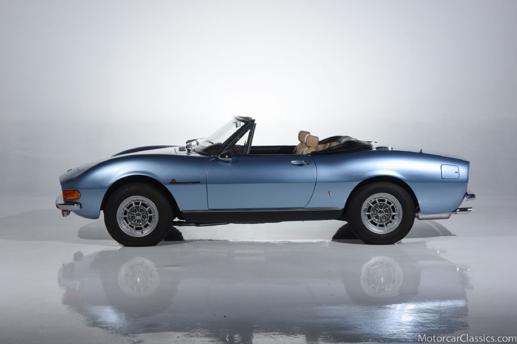 1970 FIAT DINO 2.4 SPIDER (JG) for sale! Motorcar Classics is proud to present this superb 1970 Fiat Dino 2.4 Spider. It is one of only 424 2.4 liter Spiders. This example is featured in stunning Light Blue Azzuro Metallico paint with Beige leather interior. Fiat introduced the Dino in 2.0L form at the 1966 Turin Motor Show. It was available as either a curvy, open Spider by Pininfarina or a smart-looking 2+2 coupe designed by Bertone. The car evolved into a 2.4-liter model by 1970. Ferrari took over production from Fiat, and quality was much improved. The late 2.4 Spiders are considered the most collectible of the bunch. The name is derived from Enzo Ferrari's son Alfredo, nicknamed Dino, who collaborated in the mid-1950s with the legendary engineer Vittorio Jano on a lightweight aluminum V6. A decade later, Ferrari slated this engine to power its F2 race cars. Homologation was necessary, and Fiat, with its mass-production capabilities, was delegated to get the engine into as many cars as such homologation required, in this case 500. But to showcase this new Ferrari engine an entirely new car was required. Pininfarina's beautiful spider featured a lovely wood dash with big gauges and nifty switches, and for many cars, a supple leather interior. For these late cars, the engine had evolved into a 180-hp, cast-iron, 2.4-liter unit that was paired with a more robust ZF transmission. Other upgrades included a switch from a live rear axle and leaf springs to a coil-sprung independent suspension, a larger radiator, a cable-operated clutch, an electric brake servo, and larger tires. The added power and the more sophisticated suspension bring the lithe Dino to life on a twisty road.