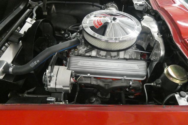 HERE IS A 1966 CORVETTE ROADSTER..ACCORDING TO PREVIOUS OWNER ORIGINAL MILEAGE... BODY IS GOOD...ORIGINAL COLOR WAS SUN FIRE YELLOW...OLDER LACQUER REPAINT RED...PAINT IS CHECKED...IT IS SHINY LOOKS GOOD FROM 10FT. ALL BRIGHT WORK IS GOOD. NEW KNOCK OFF WHEELS MOUNTED (REALLY BOLT ON) ON NEW TIRES... WHITE CONVERTIBLE TOP IS NICE. NEWER INTERIOR IS VERY NICE...NEEDS NOTHING...UNDER HOOD IS A BRAND NEW 350 CRATE ENGINE WITH AN ALUMINUM INTAKE....IT RUNS VERY WELL...ABOUT 300 HP. PETRONICS IGNITION....CORRECT FIT ALUMINUM RADIATOR...NEW OEM SHIFTER AND CLUTCH....NEW BRAKES ...IF YOU WANT A MID YEAR CORVETTE YOU CAN DRIVE AND ENJOY...HERE YOU GO....PURCHASE IT, DRIVE IT FOR AWHILE, THEN HAVE IT PAINTED....GOOD CARS BRING CLOSE TO 100000.00