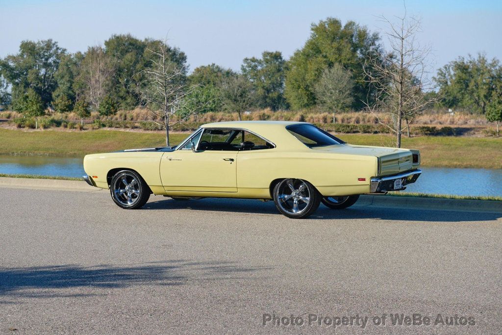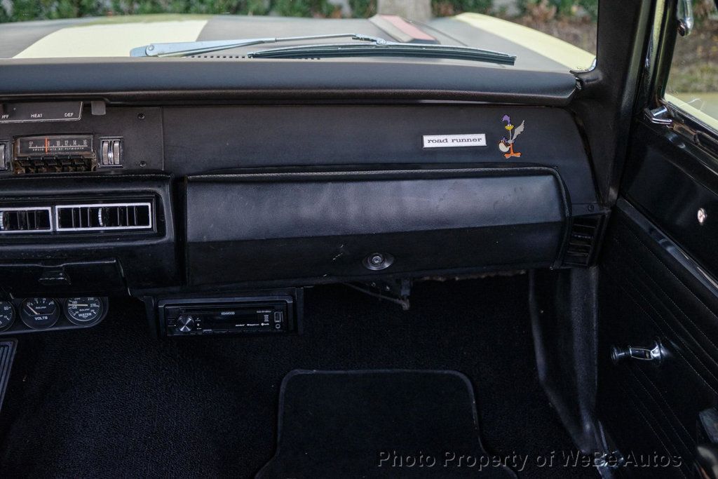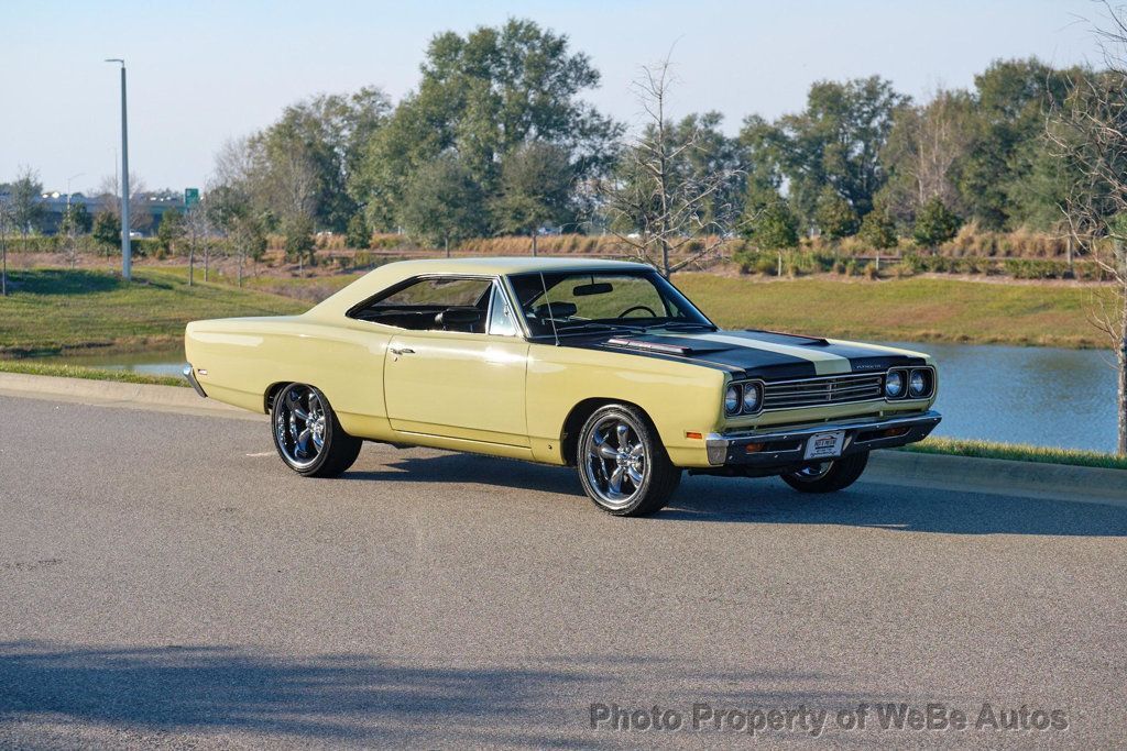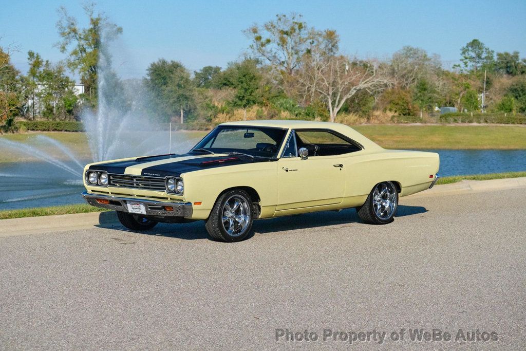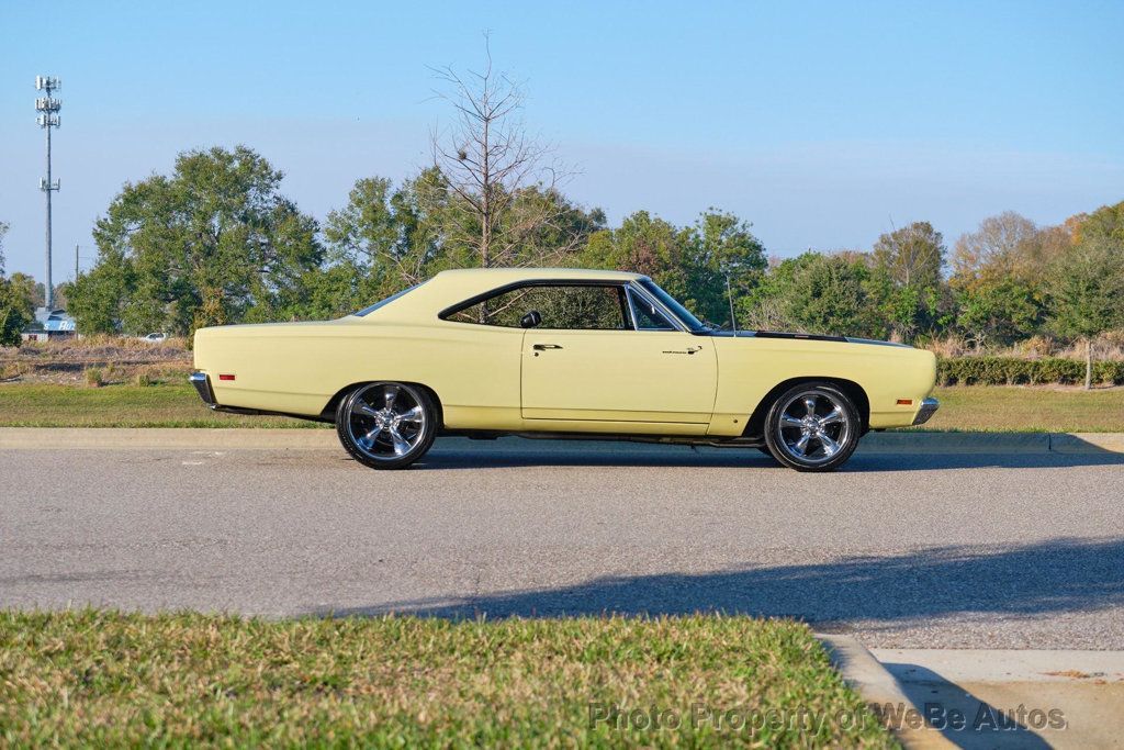 1969 Plymouth Roadrunner Classic Muscle with Freshly Rebuilt 383 V8! This 1969 Plymouth Roadrunner is a true piece of American muscle car history, featuring a rebuilt 383 V8 engine paired with a smooth automatic transmission and power brakes for an exhilarating driving experience. Finished in stunning Sunfire Yellow with bold black masked hood, this Roadrunner commands attention wherever it goes. Inside, you'll find a well-preserved black bucket seat interior, offering both comfort and classic style. ALSO AVAILABLE with custom 18 and 20 Coy wheels, currently sits on color matched stock wheels with NEW JUST ADDED Cooper Cobra White Letter Radial Tires, this beauty has the perfect stance while maintaining its vintage appeal. The engine was completely rebuilt in November, ensuring strong performance and reliability. Dual Exhaust, It runs and drives great, delivering that unmistakable Mopar power. Dont miss your chance to own this iconic muscle car a perfect blend of classic looks, modern reliability, and raw power! While we do our best to provide the highest quality muscle cars with an honest and reliable description and realize the importance of transparency when selling vehicles. That being said, we have not built, modified, changed or personally owned this vehicle. Whether this vehicle is consigned or owned by Past & Present Motor Cars we do not know the vehicles complete history since new. We want to be clear and try to answer any questions our customers might have prior to purchasing. Additionally, we not only welcome but we encourage 3rd party independent inspections. Please inquire prior to purchase to make sure the advertised vehicle has not already been sold. We list our vehicles on multiple websites and a vehicle can sell at any time. If a customer chooses to purchase sight unseen (many of our customers choose this option) the customer accepts the vehicle AS IS and WHERE IS and understands we cannot address concerns after purchase. For this reason, it's important all concerns are addressed prior to purchase. We make every effort to present accurate and reliable information, but use of this information is voluntary, and should only be deemed reliable after an independent review of its accuracy, completeness, and timeliness. It is the sole responsibility of the customer to verify the existence of options, accessories and the vehicle condition before time of sale. Financing is Available with low rates and Vehicle Shipping is available from our Showroom to your Garage. A Classic Car Warranty is Available for Purchase from a 3rd Party. Please speak to our Sales Associate or Company Representative for more information. Our team is working and available anytime by Phone or Text for your convenience at 407-559-7759. Thank you for your interest! WeBe Autos Specializes in Marketing and Advertising Muscle, Classic, Vintage and Specialty Cars. We offer Professional Photography, HD Movies, and Staging that Sells Cars. Let us showcase and sell your specialty car. Please visit our website for more details. Keep in Touch, Michael Runnalls Specialty Car Marketing & Media WeBe Autos Ltd. Long Island, NY 11780 Michael@WeBeAutos.com www.WeBeAutos.com (O)631-339-0399 (C)516-729-2003 Skype: webeautos (F)631-389-2605 - - - Contact Michael Runnalls at 631-339-0399 or Michael@WeBeAutos.com for more information. -