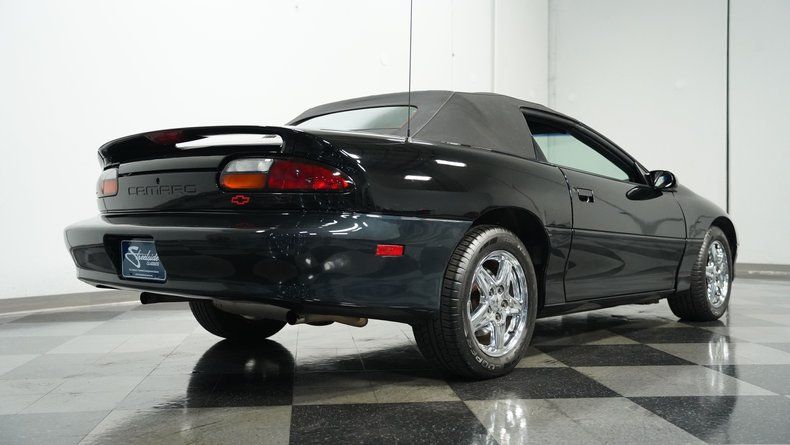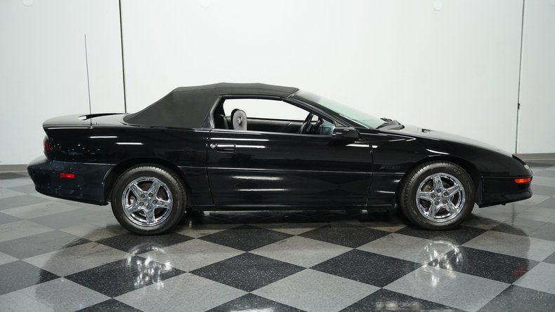 This 1997 Chevrolet Camaro Z/28 Convertible in midnight black is a classic American muscle machine with black convertible top, a true icon of '90s performance with the added exhilaration of wind-in-your-hair freedom. This 30th Anniversary model celebrates Camaro history with subtle distinction. Imagine cruising down the road in this sleek convertible, the rumble of the 5.7 Liter LT1 V8 echoing through the streets as the sunlight glints off the gleaming black paint. Rolling on 16" wheels wrapped in fresh Cooper tires, this Z/28 exudes both classic style and modern road-readiness.