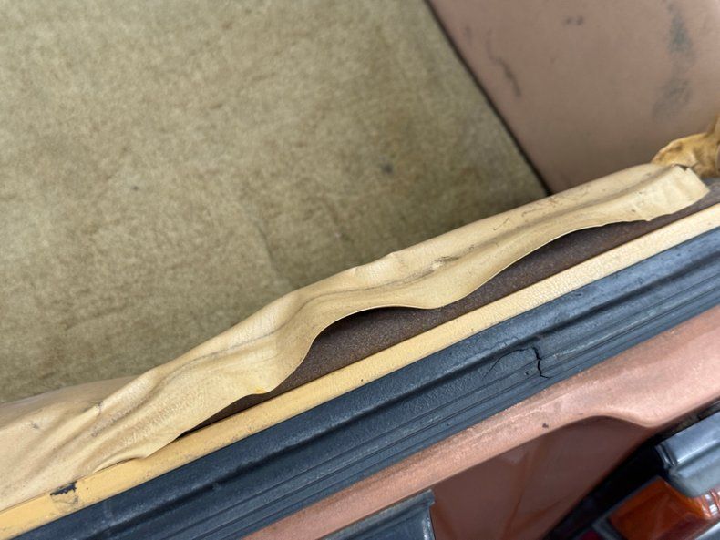Beige and tan door panels are nice compliments to the exterior brown are in decent condition with some light, general patina. The bucket seats have aftermarket covers and so do the 2+2 seats in back. The brown steering wheel is in great shape and wears a "Z" emblem, all leading to a sizable instrument cluster with essential gauges and idiot lights in a symmetrical descending pattern. More toward the middle, we find additional gauges, (and digital clock), coved and canted towards the driver in a race car inspired design. Below that, the standard A/C panel and a nickel backed AM/FM/Cassette radio panel, framed in brown plastic. On the dash itself, a fitted cover protects the sun exposed surface that has some telltale cracks. In the center console the shifter takes its place and once again, it's metal over plastic. The beige carpet is nice in the footwells outside of the brown rubber mats, but in the cargo areas it's a bit soiled. But this cargo area also has loose and cracked material on its walls and some staining of the plastic, along with some wear on the weatherstripping. The headline on this solid roof car is in good condition.