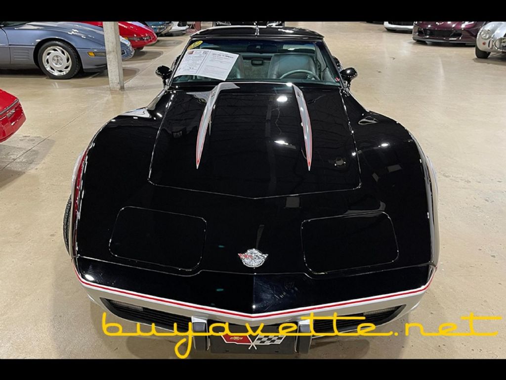 SEE MORE PHOTOS OF THIS VETTE AND MANY OTHERS FOR SALE AT WWW.BUYAVETTE.NET! WE ARE THE ONLY SELLER OF PRE-OWNED CARS THAT HAVE BEEN FULLY INSPECTED, AND ARE BACKED BY A FREE WARRANTY. Code correct Black/Silver exterior, code correct Silver leather interior, glass t-tops. Numbers matching 220hp 350ci L82 engine, automatic transmission, posi rear-end. Features include Indianapolis 500 Pace Car package, Gymkhana suspension, air conditioning, power windows, power locks, power steering, power brakes, cargo shade, ZX2 Convenience (lighting) Group, AM/FM/8 track stereo, dual rear speakers, sport mirrors, cruise control, tilt-n-tele, rear defrost. Originally assembled on April 27, 1978, this 1978 Corvette Indianapolis 500 Pace Car L82 is in particularly nice condition, showing just 10,116 miles on its odometer! Although we can only document the miles with a 2002 bill of sale from a very reputable Corvette dealer and odometer readings from repair records since 2002, there is no doubt in our mind that the miles on this car are original, based on the overall originality and condition of this car's parts. Furthermore, this was a RIDICULOUSLY low mileage car up until 2002, when it was sold to the next owner with just 42 miles showing on its odometer at that time. Car has had a quality repaint at some point, which is good-vg, with a nice shine. All exterior glass on this car shows a correct date code, including the t-tops. Weatherstripping and taillights appear to be newer, and are vg-exc. Slotted aluminum wheels are in good condition with vg center caps, and BF Goodrich Radial T/A raised white letter tires show an average of 9/32nds tread depth remaining. The interior of this 1978 Corvette Indianapolis 500 Pace Car L82 looks to be very original, showing vg gauges and carpet, and good-vg seats and steering wheel. Correct appearing AM/FM/8 track stereo is in place. The numbers matching L82 engine in this 1978 Corvette Indianapolis 500 Pace Car L82 shows original casting date April 10, 1978, and final assembly date April 21, 1978. Correct air cleaner, intake manifold, ignition shielding, valve covers, and air pump are all in place. Included with this car will be its original build sheet and owner's manual, in addition to the previously mentioned 2002 bill of sale and all records since. Call us today to put this Pace Car in your collection! FREE 2 YEAR/50K ADDITIONAL MILE WARRANTY, GOOD AT ANY REPAIR FACILITY NATIONWIDE!! Our Price: $33,999 or 20% down with payments as low as $484/month W.A.C.