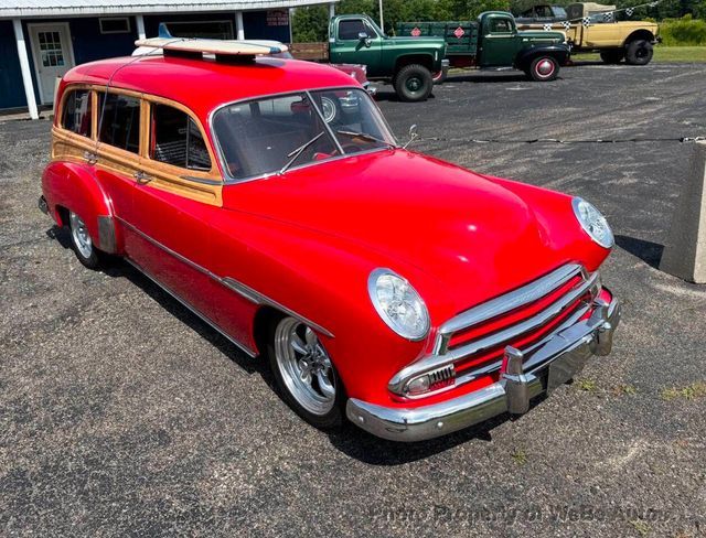 1951 Station Wagon Chevrolet Red Custom Tin Woody 11,800 miles since redone, Drive Any Where !! This one can handle the Family, and Grandkids, (even has a DVD player !) and do it with Style and Uniqueness. Plus It has a Modern Fuel injected V8, A/C , Leather interior, and Room for luggage on a weekend trip! video here https://youtu.be/KPlK_0C0KTY?feature=shared Fuel injected Vortec V-8 engine, Automatic transmission with overdrive, Red with wood detailing Custom Brown leather interior, Grant 3-spoke wood rimmed steering wheel, AutoMeter carbon faced gauges Central dash mounted White faced clock, Power windows, Upgraded Pioneer audio system Aftermarket air conditioning ,Power front disc brakes, Mustang II front end with rack and pinion steering Eagle chrome 5-spoke wheels, Dual exhaust, Custom headlights, Third brake light WeBe Autos Specializes in Marketing and Advertising Muscle, Classic, Vintage and Specialty Cars. We offer Professional Photography, HD Movies, and Staging that Sells Cars. Let us showcase and sell your specialty car. Please visit our website for more details. Keep in Touch, Michael Runnalls Specialty Car Marketing & Media WeBe Autos Ltd. Long Island, NY 11780 Michael@WeBeAutos.com www.WeBeAutos.com (O)631-339-0399 (C)516-729-2003 Skype: webeautos (F)631-389-2605 - - - Contact Michael Runnalls at 631-339-0399 or Michael@WeBeAutos.com for more information. -