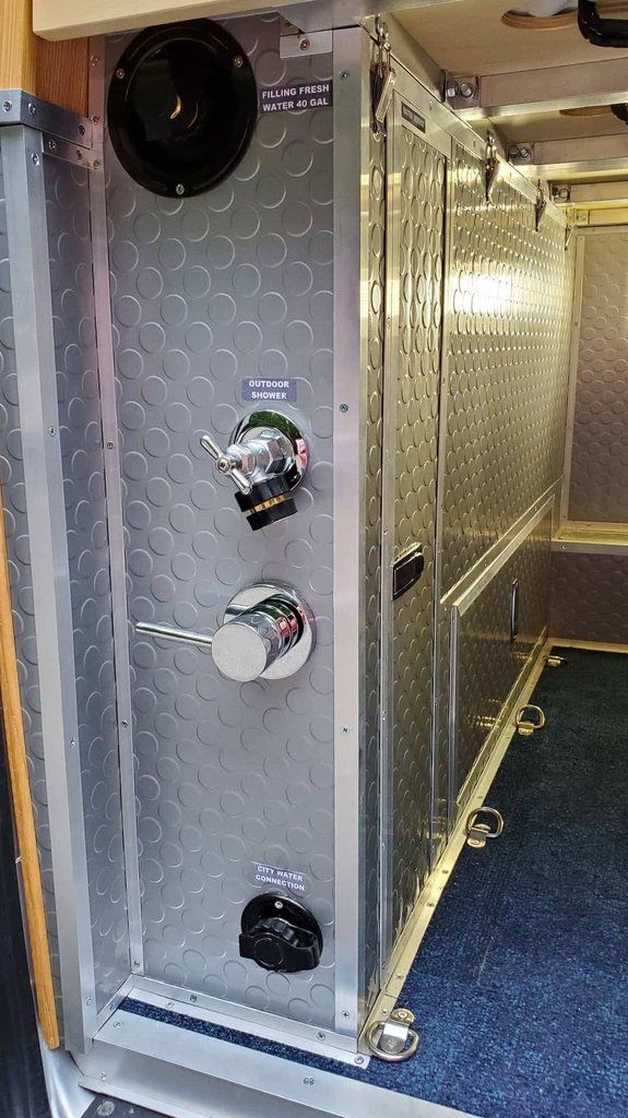 -7-GALLON GRAY WATER TANK" WATER PUMP-BOSCH ELECTRIC MINI-TANK WATER HEATER TRONIC 3000 T 4-GALLON NEW PORTABLE INDOOR OUTDOOR TOILET, 5.8 GALLON WASTE TANK-OUTDOOR SHOWER KIT