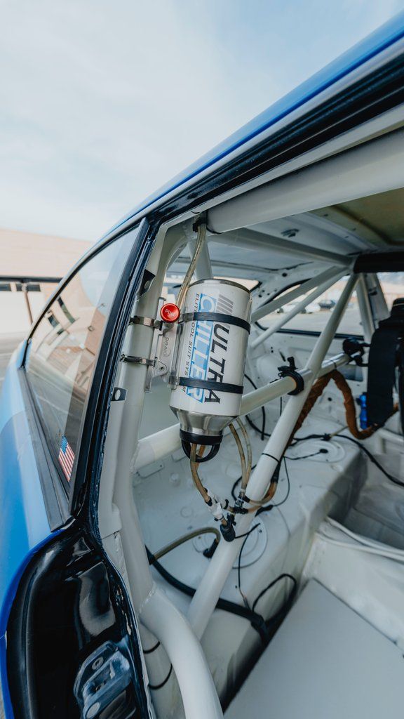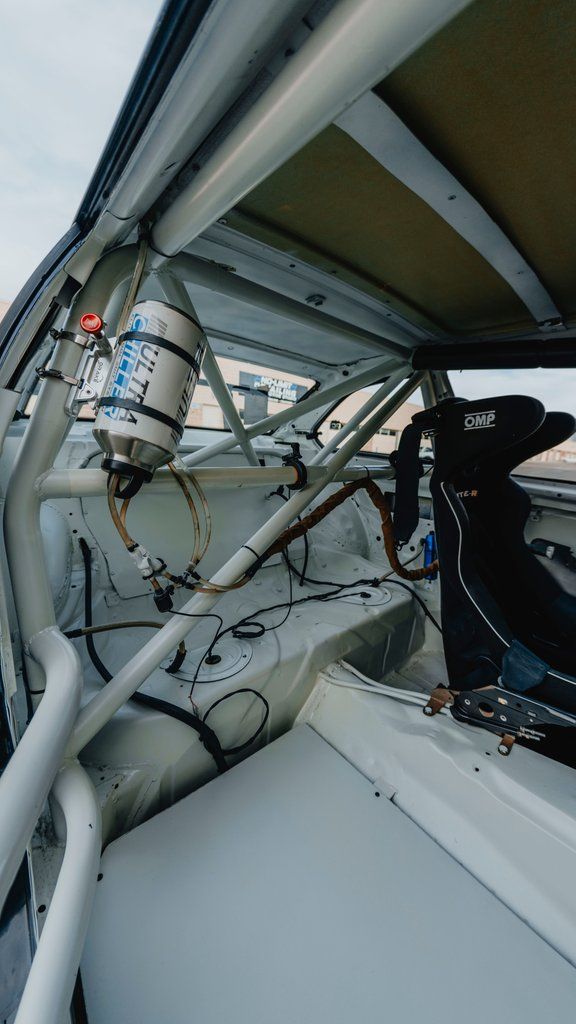 California chassis-no rust Shaved off all unnecessary brackets and studs for race prep Fiberglass sunroof delete for a slick top look Interior painted in Diamond Pearl White; Engine bay painted in Schwarz II NASA-approved roll cage with high-density foam padding Sparco HTE-R race seat and 5-point harness Joe's racing rearview mirror and steering wheel hook Quick-release NRG hub Vac Motorsport seat sliders Hard Motorsports dash flocked in ABS material