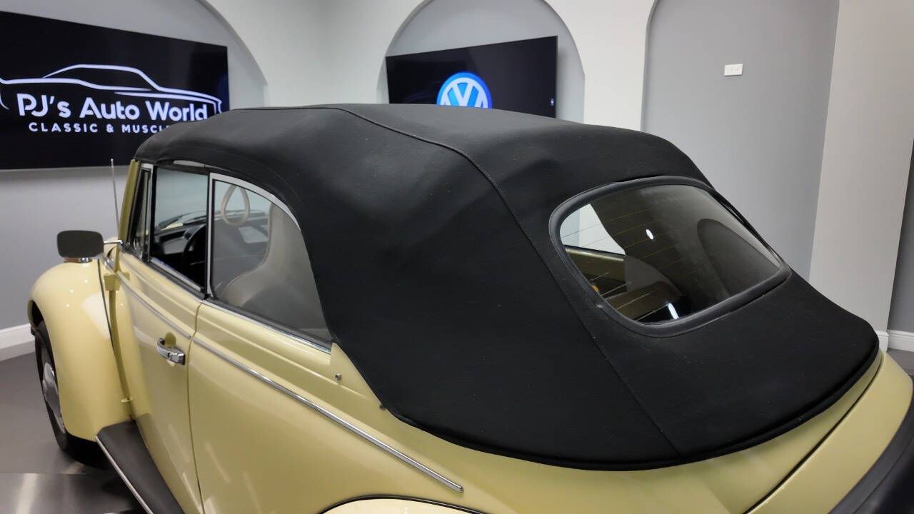 PJ's Auto World is pleased to offer this 1977 VW Type 1 Super Beetle Convertible for Sale. Powered by an AE-Suffix 1.6-Liter (1,585 cc) air-cooled horizontally opposed 4-cylinder engine, Solex Carburetor, 4-speed manual gearbox, MacPherson strut front suspension (introduced in 1971). The Super Beetle offers sharper handling and a touch more interior space than the standard Beetle. Refinished yellow exterior, painted front trunk area and detailed undercarriage. Rolling on a set of 15 steel wheels with chrome center caps. It's accented by dual mirrors, front bumper guards and an engine rain deflector. Equipped with a factory VDO Speedometer and tan bucket seat interior that's pure Vintage VW. Recently replaced black canvas convertible top. Lightweight, reliable, and ready to cruise! This Super Beetle Convertible is your ticket to an open-air adventure and admiring glances. Don't miss out on owning a piece of automotive history! Contact us today to make it yours! With over 45 years of dedicated service to the collector car community, we've cultivated a wealth of knowledge and experience that we're eager to share with you. Whether you're a seasoned enthusiast or a curious newcomer, our team is here to answer any questions you may have. We understand that acquiring a collector car is a significant investment, and we're committed to making the process smooth and stress-free. To that end, we offer access to financing through reputable sources, ensuring you have the best options to secure your dream car. Additionally, we've partnered with reliable shipping providers to ensure your prized possession arrives safely and securely at your doorstep.
