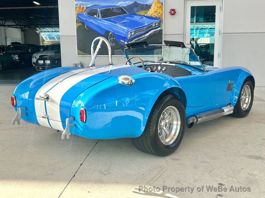 1965 Ford Shelby Unique Motorworks 427 Factory Built By Unique Motorcars For Sale Titled as a 1965 Ford Shelby Unique Motorworks 427 Cubic Inch Stroked to a 462 Cubic Inch Performance Engine Aluminum Intake Performance Carburetor Ford Cobra Aluminum Valve Covers Aftermarket Spark Plug Wires Open Element Air Cleaner Exhaust Headers Leading Out to Side-pipes External Oil Filters Ford T-10 4 Speed Transmission 3.55 Posi Rear End Wilwood Disc Brakes Jaguar Independent Rear Suspension Custom Frame Tubular A-Arms External Oil Filters Carrera Adjustable Coil Overs Black Leather Bucket Seats Center Tunnel Black Door Panels Full Complement of Stewart Warner Gauges Wood/Polished Sport Steering Wheel Simpson Racing Seat Belts Single Loop Chrome Roll Bar Floor Shifter Black Carpet Unique Cobra Floor Mats Ford Grabber Blue Paint With Painted White Stripes Covering the Iconic Cobra Body Flared Fenders Shelby Hood Scoop, Side Vents, Chrome Trim Chrome Front and Rear Racing Bumper/hooks 427 Shelby Cobra Badging LED Tail Lights Correct Cobra Windshield With Correct Wing Glass Snap on Cockpit Cover Moroso Kill Switch Compumotive Wheels Black Sidewall Fat Tires All Around The owner states it cost over $150,000 to build this Shelby street machine This 1965 Ford Shelby Unique Motorworks is powered by a high-performance Ford 427 cubic inch performance engine that has been stroked to 462 cubes. It has many go-fast goodies including an aluminum intake, Holley performance carb, Ford Cobra aluminum valve covers, aftermarket spark plug wires, open element air cleaner, exhaust headers leading out to side-pipes, external oil filters, a Ford T-10 4-speed transmission, and a 3.55 posi rear end. The engine is supported by a Jaguar independent rear suspension in the custom frame with the front end having tubular A-arms, Carrera adjustable coil overs, while it rides on Compumotive wheels and black sidewall fat tires all around. Interior The interior looks brand new, and when you ease yourself down into the custom-designed black leather bucket seats, you will find that they are very comfortable for long drives, and you will never want to get out. You have plenty of legroom to stretch out your legs and will also admire the full wrap- around interior that has a center tunnel, black door panels, a full complement of Stewart Warner gauges, wood/polished sport steering wheel, Simpson racing seat belts, single loop chrome roll bar, floor shifter, black carpet, and Unique Cobra floor mats. Exterior The beautiful 1965 Ford Shelby Unique Motorworks has new Ford Grabber Blue paint with painted white stripes covering the iconic Cobra body with flared fenders that give it that aggressive stance. Other highlights include the Shelby hood scoop, side vents, chrome trim, chrome front and rear racing bumper/hooks, and 427 Shelby Cobra badging. In almost brand-new condition With its big-block Ford 462 cubic inch engine, performance chassis, and 4-speed transmission, it will give you the ride of your life and is a must-have that any collector needs in his stable to finish his collection. Located in Bradenton, FL 34212 Take A L@@K At The Video On YouTube: https://youtu.be/CX1tDImohKk?si=XOmgh7x4EX6Uu3_y WeBe Autos Specializes in Marketing and Advertising Muscle, Classic, Vintage and Specialty Cars. We offer Professional Photography, HD Movies, and Staging that Sells Cars. Let us showcase and sell your specialty car. Please visit our website for more details. Keep in Touch, Michael Runnalls Specialty Car Marketing & Media WeBe Autos Ltd. Long Island, NY 11780 Michael@WeBeAutos.com www.WeBeAutos.com (O)631-339-0399 (C)516-729-2003 Skype: webeautos (F)631-389-2605 - - - Contact Michael Runnalls at 631-339-0399 or Michael@WeBeAutos.com for more information. -