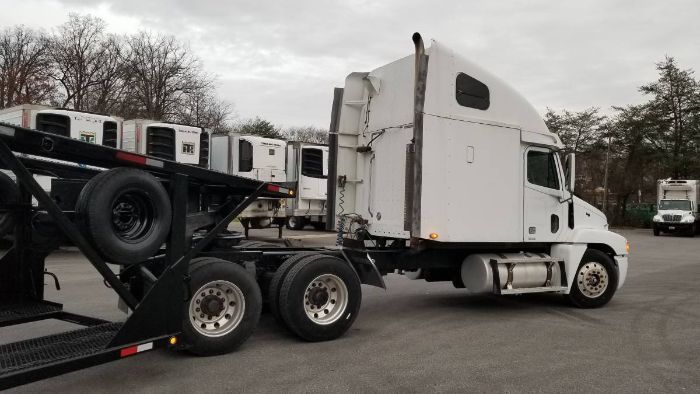 Car Carrier Hauler Tractor-trailer ELD EXEMPT. 2001 Freightliner Century ST120 Condo Sleeper with 2 bunk beds. No rust. 580K miles. Build order spec sheet available from Freightliner Corp in the State of Oregon using VIN # 1FUJBBBD41PJ06818. Special Custom Built 2 Receiver Hitch, Cummins N14 (NO EMISSION DEVICES) engine. 10 Speed Eaton Fuller manual (RTO-16710B-AS2) transmission with paddle shifter (AUTO MODE OR MANUAL) on steering column. 3.36 rear axle ratio. (2) 100 gallon fuel tanks. New batteries. New front tires. New rear brakes on both axles. All new filters on the engine. New engine oil. Fixed 5th wheel has been moved to fit current 6 car trailer. Foot Brake valve replaced. Wiper fluid pump replaced. Transmission Back up light sensor replaced. 2001 Kaufman EZ 5/6 Car Carrier Hauler trailer. Holds 6 cars. Trailer is mostly rebuilt. Two spare tires. New lower main steel beams from front axle to the front of trailer. (3) new diagonal steel beams also replaced. (2) new hydraulic cylinders. New Hydraluic fluid. New paint. Tires replaced. New wiring harness in the lower part of trailer in external conduit. Brakes like new. Stock # 90087 FOR MORE INFORMATION CALL Customer Service @ 833-265-6113