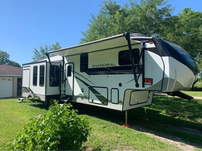 2022 Coachmen Chaparral 373 MBRB Check out this amazing 2022 Coachmen Chaparral 373 MBRB! The seller used it as a 2 bedroom/office space and lived in it for about 6 months. The RV has been well-maintained and comes with some incredible upgrades, including new black water tank lines for easier cleaning, a new 3-step water filtration system with toilet cleaning sprayers, a new bathroom shelf, and 4 additional jack stands. You'll also love the new bumper travel rack, new bedroom TV, new wheel locks, new level blocks, and even a new bar with stools ,and a extended warranty coverage! This RV is ready to travel and will make your adventures unforgettable. Stock Number: 77538 FOR MORE INFORMATION CALL 833-265-6113