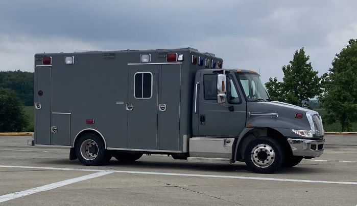 2013 International Durastar 4300LP VIN: 3HAMNAAM7DL166479 Looking for a unique and reliable RV that will take your camping experience to the next level? Look no further than this 2013 International Durastar converted ambulance! With only 170,000 miles and routine oil changes every 10,000 miles, this 6-cylinder, 7.6fl turbo diesel vehicle is in top condition and ready for your next adventure. Originally used as an EMS vehicle for a fire department in Cincinnati, this RV comes with all original paperwork, owner's manual, maintenance records, and more. Plus, with its conversion to an RV in spring 2022, you'll be the only owner since. Inside, you'll find an open floor space measuring 9.5ft x 2.5ft, with a full-size foam-topped mattress and Murphy bed setup that sleeps two adults comfortably in bedroom mode. In living room mode, there's a full-size couch and flip-up table, with an additional table available. The kitchen is equipped with an upright fridge with a separate freezer, stainless steel faucet with sprayer, Breville toaster oven, single burner butane stove, and a butcher block countertop. Plus, there's plenty of storage for food, cooking gear, and more, including designated trash and recycling. Other features include an 800w solar panel system with a Bluetti solar battery, backup generator, both AC and DC access in the front cab and back living space, and its own electrical system with inverter and shore power. The front cab has heat and A/C, while the back living space has both an ambulance heater, propane heater, and a wall A/C unit. With 6 new tires put on in December 2023, dual rear wheels, and 3 new batteries for the ambulance engine put in March 2022, this RV is well-maintained and ready to hit the road. Plus, with its total body grey paint job with decal and tons of internal and external lights, it's sure to turn heads and illuminate your entire campsite. Don't miss out on this amazing opportunity - this RV won't last long! Stock Number: 11057 FOR MORE INFORMATION CALL 833-265-6113