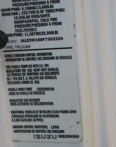 2015 Isuzu NRR Dump Truck The 2015 Isuzu NRR Dump Truck is a versatile and well-equipped workhorse built for demanding tasks. Powered by a 5.2L diesel engine paired with a durable Aisin 6-speed transmission, it boasts a GVW of 19,500 lbs. Its 12-ft Crysteel dump body with a 24 x 8 toolbox behind the cab and underbody toolbox ensures ample storage and functionality. The truck includes multiple rear body door configurations, a power tarp, and approximately 18-yard capacity, making it ideal for landscaping, construction, and more. Inside, enjoy modern features like power windows, power door locks, a tilt and telescoping steering wheel, Bluetooth radio, heated mirrors, air conditioning, cruise control, and more. With heavy-duty specs and a user-friendly design, this single-axle truck is under CDL and ready to perform. Located in Lorton, VA 22079 For more information, please call 833-265-6113 and mention ID 91170
